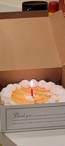 Recently I decided to give Nation's another chance and try something other than their cheesecake which is always delicious. So I tried the sweet potato tart and a slice of pumpkin pie. Well evidently Nation's has hired a new pie chef or the one they have finally learned how to bake pies. Both were absolutely DELECTABLE. I could not believe they were as good as my grandmother used to make when I was growing up. Their pies used to be terrible and I had not bought one in years. They are finally living up to the bragging they do on their pies. The sweet potato tarts and pumpkin pies are truly worthy of being entered in 'best pie' contests and I think they would win 1st prize. They are now worth the money and I would recommend anyone that likes sweet potato and pumpkin pies to give Nation's a try. I don't think they'll be disappointed. I sure wasn't. I just put mine in the microwave for 30 seconds to warm them up just a little. They have just the right balance of sweetness and sweet potato and pumpkin flavor. To die for! You will want more! Please keep whoever you have making pies at this store employed. They know how to...