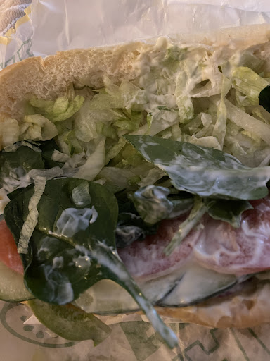 Read moreOrdered through the app. We live in another town. Travelers save your money. They are giving you shaved vegetables, as in paper thin . In a Foot Long Sub, you will get 6 leaves of small spinach, approximately 12-16 piece's of shredded lettuce, 4 shaved tiny tomato pieces, 4 shaved cucumbers, 6 shaved green peppers about 1" long if you can find a few onions you are lucky. The mayonnaise was so overwhelming it hides all that's under it.