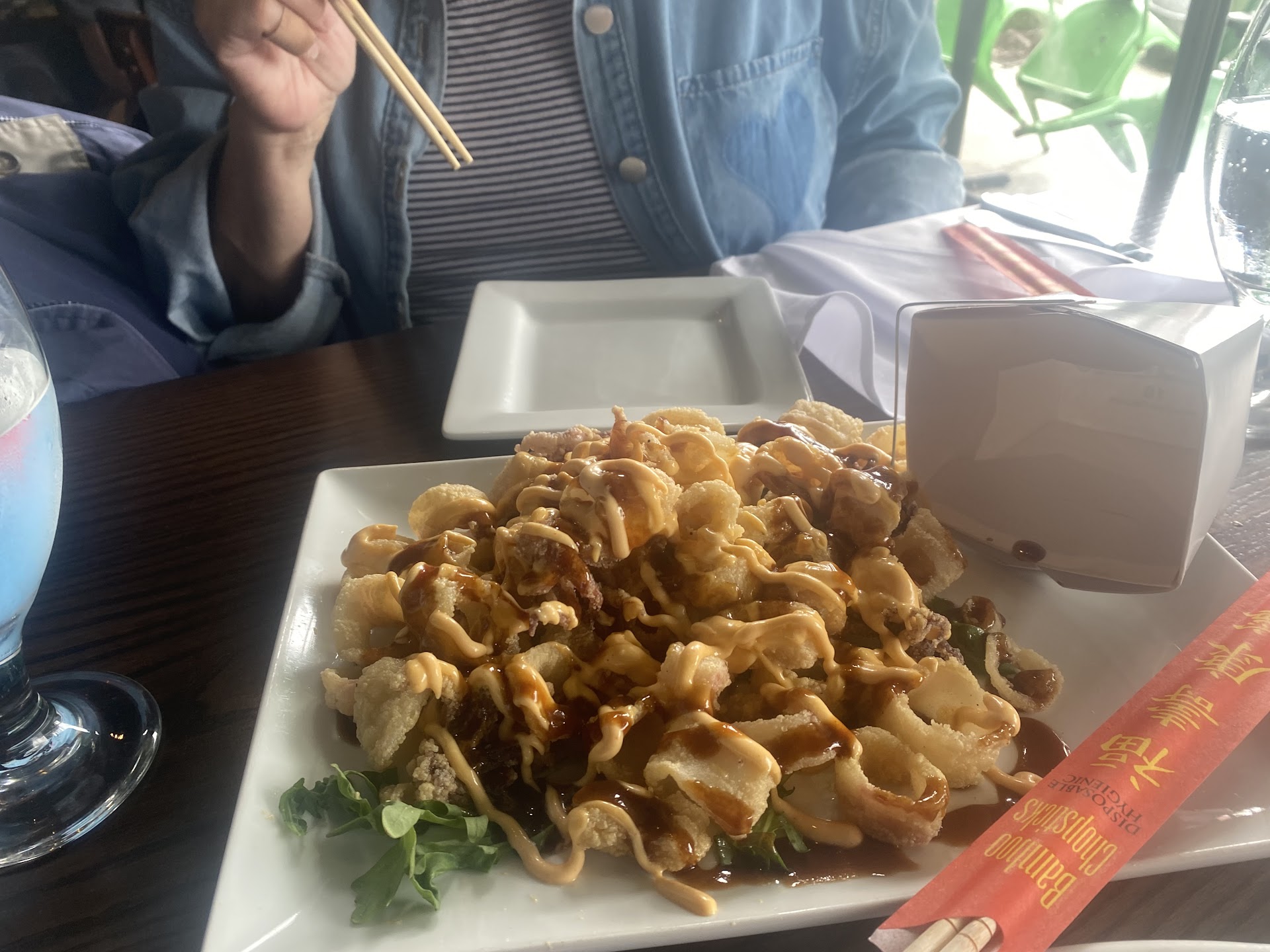We shared an appetizer of Calamari, that came with General Tso's glaze, arugula & Thai chili mayo. My main course was Scallops, pan seared over mushroom risotto, wilted spinach leaves & toasted slivered almonds. One of my friends had Chicken 'Scarpariello' (pan-roasted half a bird, spicy cherry peppers & smash-fried red bliss potatoes) and my other friend had a Tuna Burger, topped w/ avocado, tomato, bean sprouts & spicy mayo.