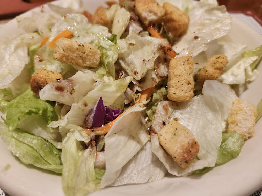 The salad wasn't good. This restaurant could learn a few things from LaRosa's and Cheddars Scratch Kitchen about a good salad. The bowl of bagged salad mix still tasted of the chemicals the produce folks use to whiten that stuff. It had not been rinsed or tossed...other than into the bowl. A few croutons were added along with my requsted (poor tasting) honey mustard dressing. No tomato. No cuke. No cheese or onion. Nuttin. It was bad enough to serve bag salad, but NAKED bag salad!? It was also wilted. I saw at least half our table push theirs away, leaving it unfinished and wasted. The replacement minestrone wasn't bad. It was hot and tasty but very salty. The bread was actually pretty decent.