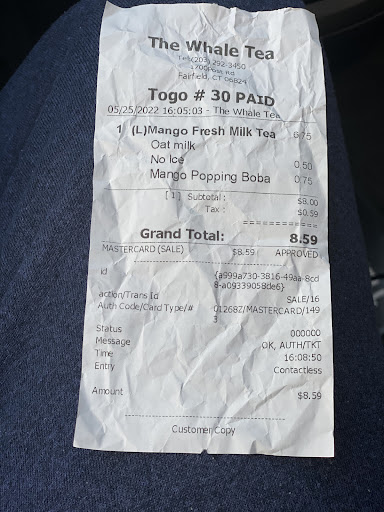 Read moreI walked into this humble yet broad establishment looking for this so called "whale tea," but it appeared that it was not on the menu. The only whale I saw was the huge blubbery monstrosity of a human being if you even want to call it that, but still... no tea. Therefore, being the business man I am, I know that this false advertisement which made me mad. I then settled for the brown sugar boba. I received my order from the whale but it had some weird bottle fluid with a tint of white in it, it was sticky. If you know what I mean, I think the Whale sprouted but in my boba, not a fellow sprout. I linked an imagine of the...