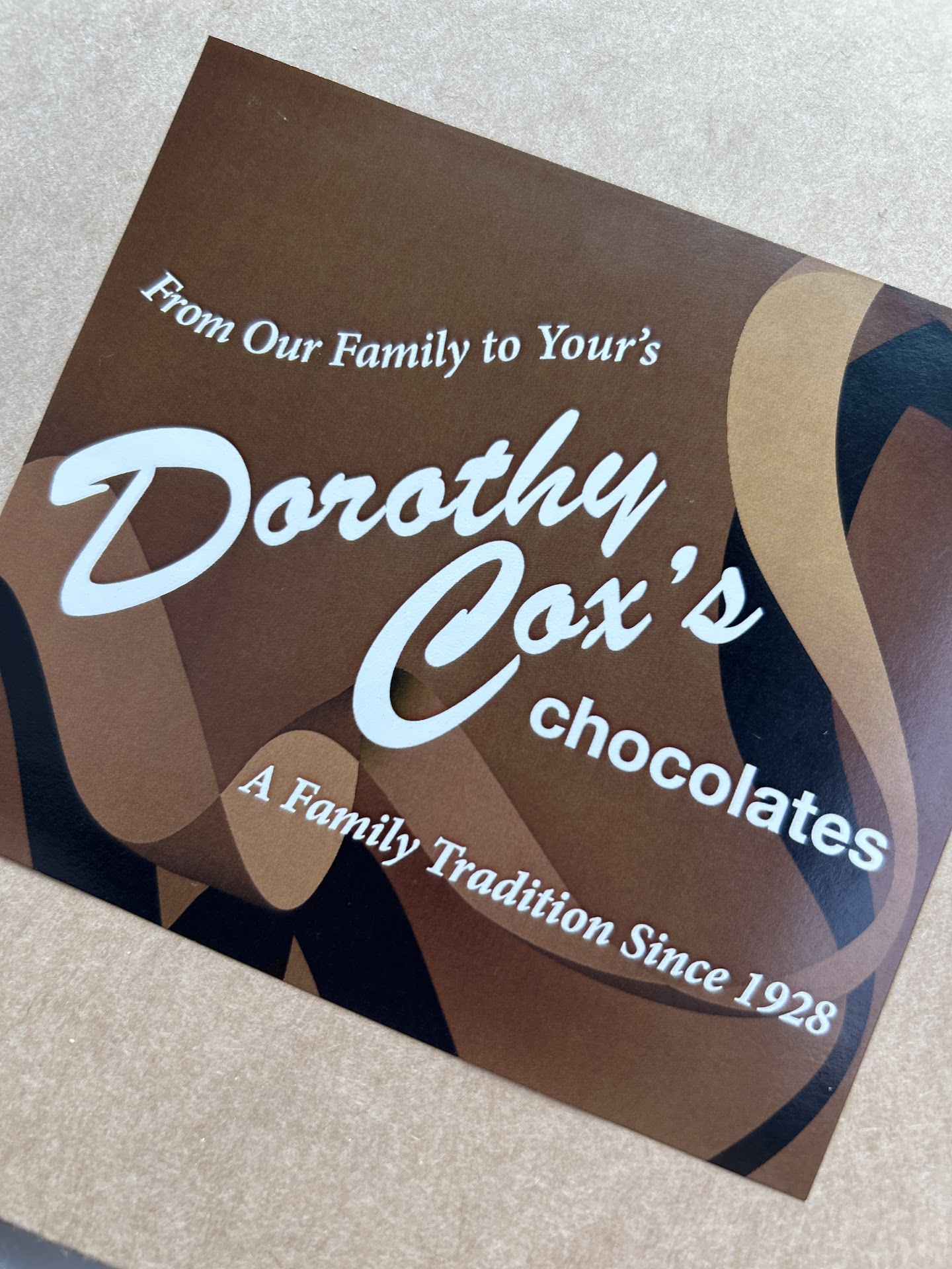 The packaging had no marking indicating perishable contents. The box was supposed to be packed with ice, but it only came with a tiny pack that melted in transit. The chocolate thus melted into a single mass after USPS propped up the box at my door. This may not have happened if Dorothy Cox's Chocolates properly marked the contents as perishable goods and ensured adequate protection for 90+ degree summer temperatures.