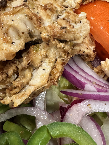We also got a grilled chicken salad… the pita bread was burned and there was a hair in the salad! I’ve shared a photo.