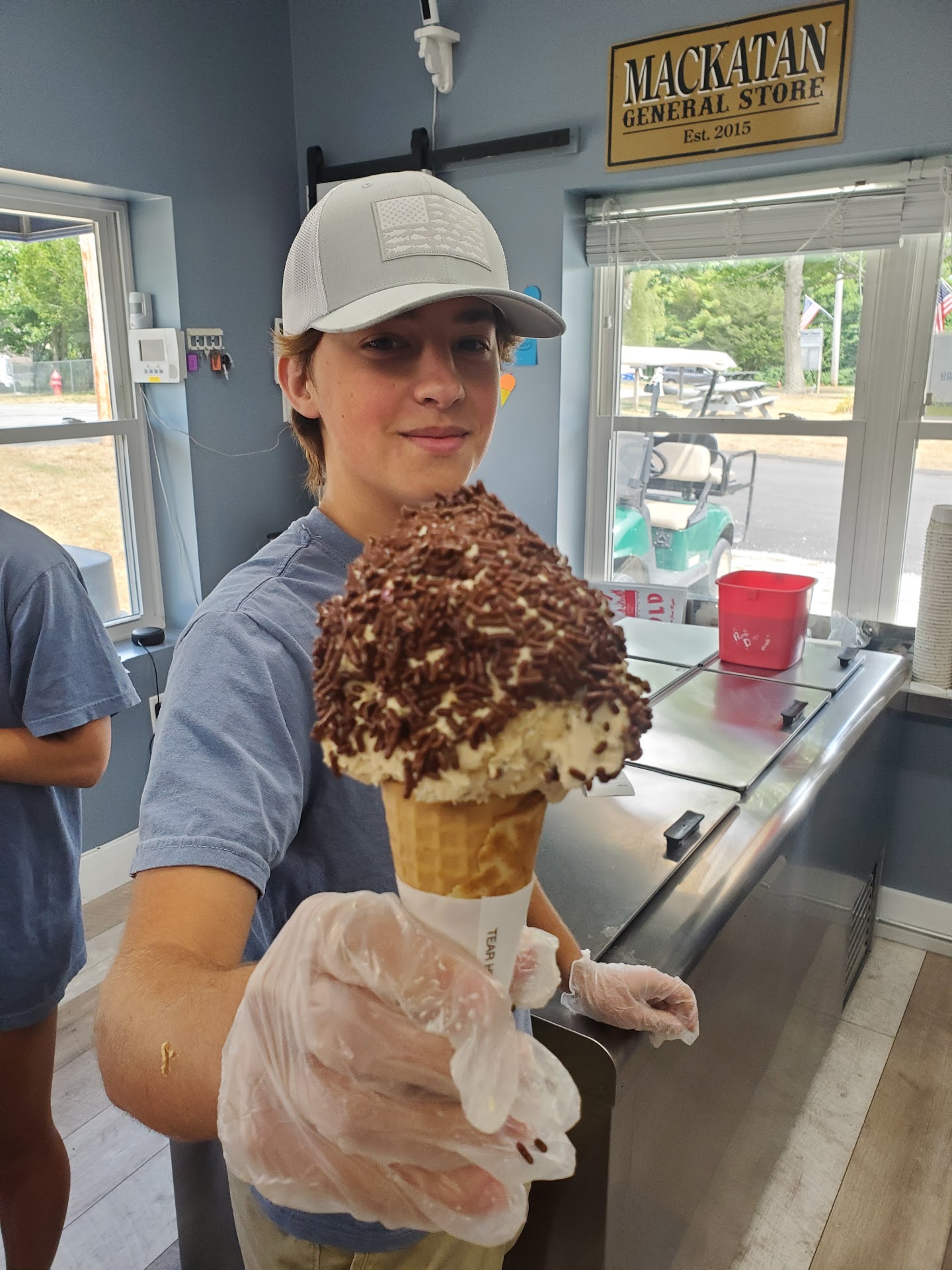 Fantastic service and delicious ice cream! The servers were friendly and helpful. I had a cone of Coffee Almond Fudge (soo good) and my daughter enjoyed her cone of Cake Batter ice cream. Guests can sit inside the cozy dining area or sit outside on Adirondack chairs. We're always excited to try new ice cream shops and this place was great! Highly recommend to anyone looking for tasty treat while visiting...