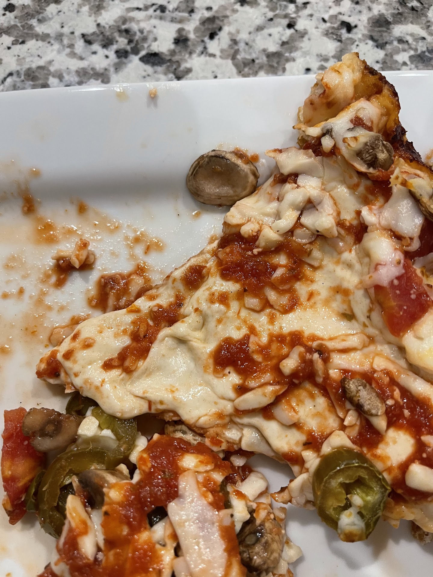 The picture is what lay beneath the cheese and sauce. Raw pizza dough. The folks making the pizza was in such a rush to remake this pizza they overdid the cheese and sauce and the pizza didn’t cook all the way through.