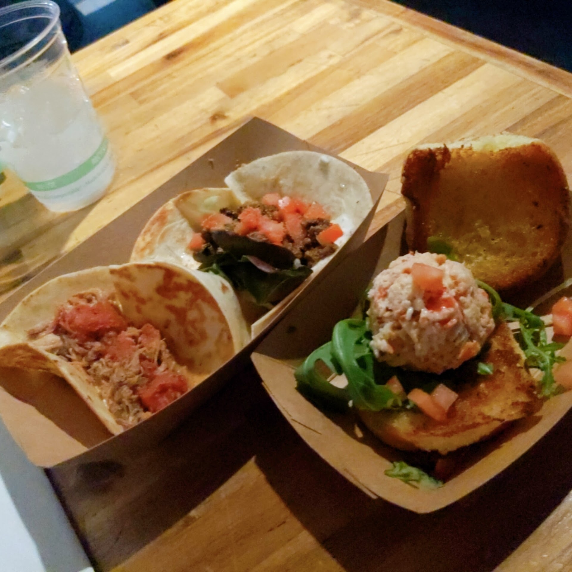 You can get either small plates or entree-sized meals and you'll need 3-4 small plates to make a meal. I ended up getting one of the night's specials, a lobster roll, and the $2 curry taco of the night, plus a blackened ribeye taco. The lobster roll could have used more flavor in the mix, and curry taco was pretty good but by far the best was the ribeye taco. I had planned on also getting the special peach quesadilla for dessert, which would have just filled me up, but by the time for dessert, they had sold out of it. I had got there about 7:15, was seated and got my food by around 8ish, and by 8:20ish they were sold out. So I guess the moral of the story is to go early?