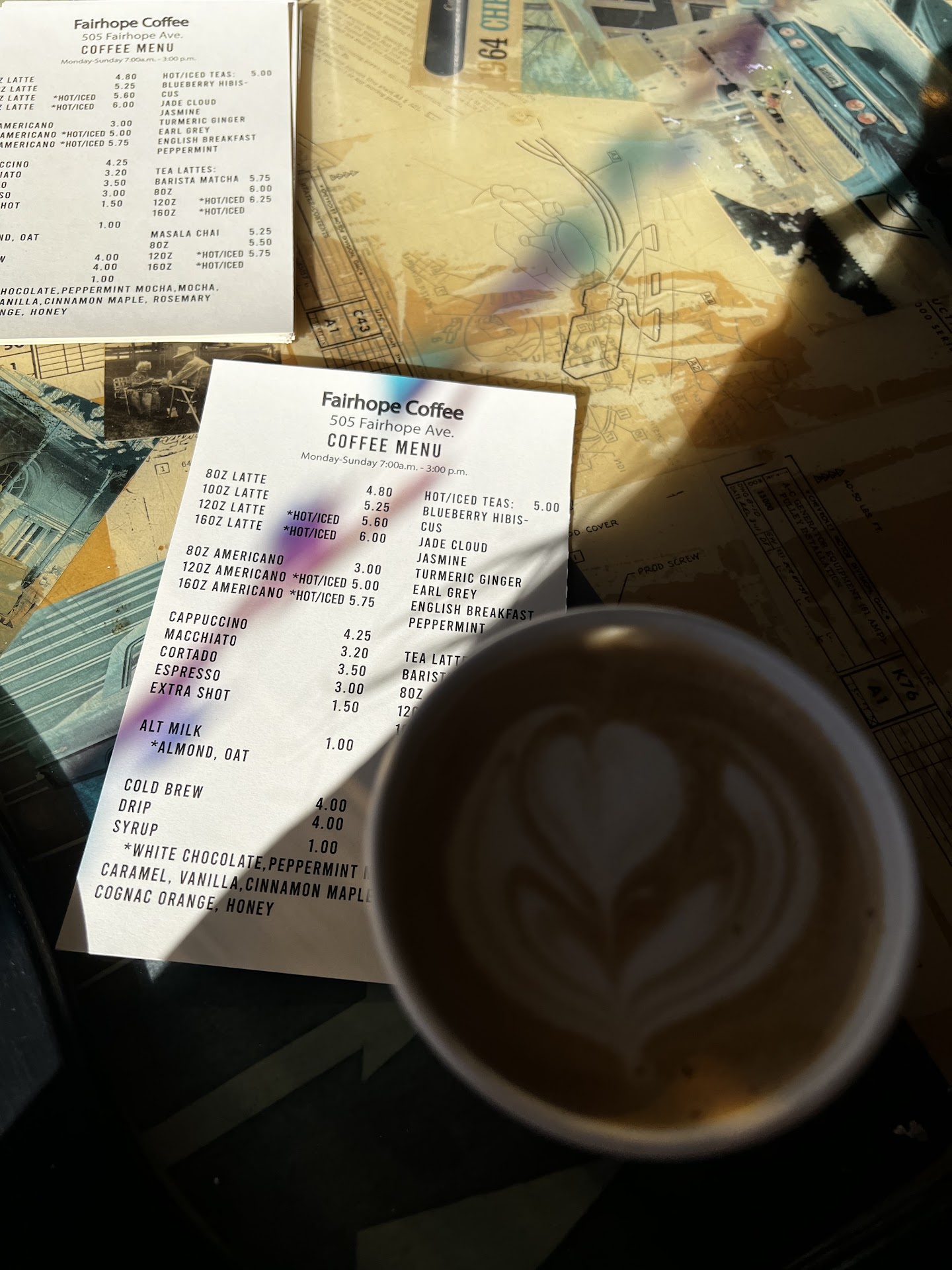Great little spot for a delicious coffee! I had seen this business posting on Instagram and Facebook and knew we had to try it out. Came by for an early Saturday morning coffee and my husband and I were very pleased! I had an iced latte and he had the hot latte with a homemade coconut vanilla syrup… both fantastic! Everyone there could not have been more kind and welcoming! Garage doors were open, fantastic Fairhope weather and a cool spot to hang out! Looks like they just got a coffee bean roaster as well… this spot is already really good, but you can tell the owners are putting the work in to make it even better! Looking forward to our next...