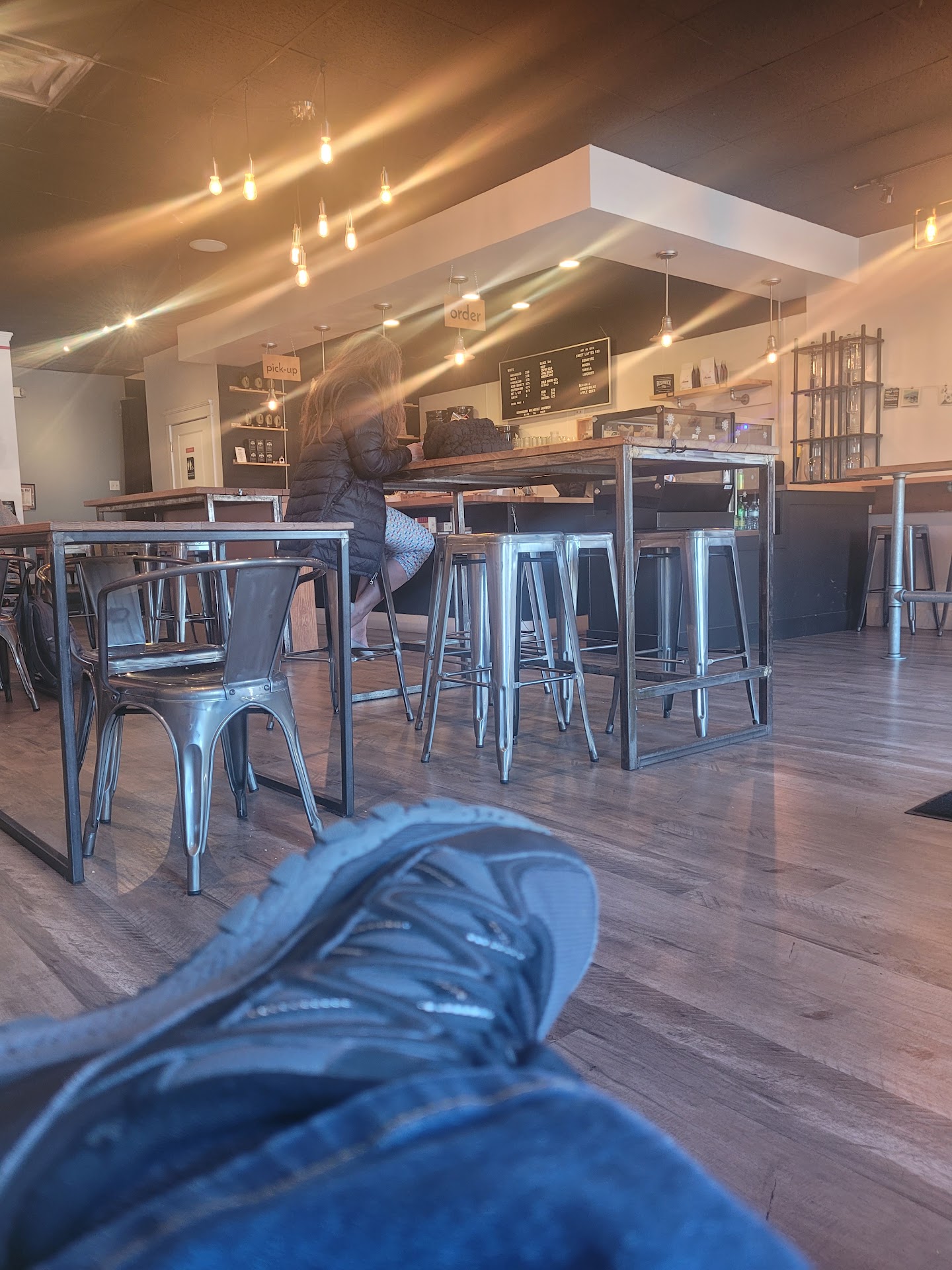 There are plenty of seating options to choose from inside ranging from couches, tables, high tops and a couple individual chairs near the windows at the front of the coffee shop. The coffee shop has a subtle hipster vibe to the overall appearance and atmosphere.