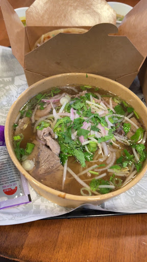 Food: pho broth - not bad. Pho noodle - got overly soft from covering the lid after cooking, which ruined the taste of my entire order. Recommend leaving the lid off for customers eating at the place to prevent overcooking the noodles inside. They have all the veggies placed inside the soup when ordering, rather than having customers put them in themselves. Just be aware. The house-made hot sauce has a kick to it, but it's delicious nonetheless. Eggrolls are pretty good. Oxtail inside soup is full of fat; the least the kitchen can do is to trim it off. Vietnamese iced coffee - we had so many Vietnamese coffees from all different restaurants, I can say, they're not authentic, too thick, did not taste right.