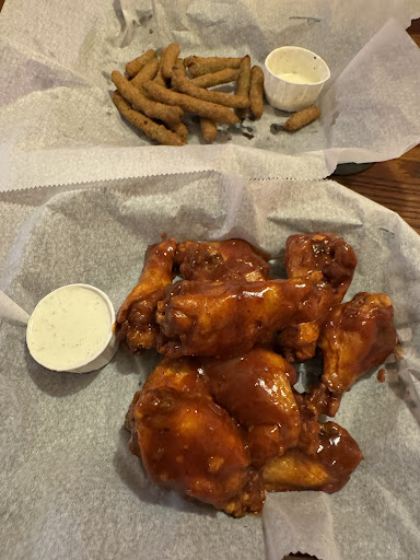 First time trying Hoops since we moved to fairmont and was absolutely disappointed at the service and the food. We ordered an appetizer of cheese sticks and 2 orders of 10 wings. The appetizer didn't come out until after the food, and the first order of wings had 6 burnt or over cooked wings. After 10 minutes of trying to flag down the server to let her know she stated that "they don't normally look like this" and offered to replace them. She walked away with them and came back not even 2 minutes later stating that all the wings look like this but she would take them off the bill. All while the second order of 10 wings looked perfect; not burnt or over cooked. Our server who had 2 other tables and a single person at the bar top seemed to only check in with the 2 tables including bussing a whole table while ignoring us trying to flag her down. We left the restaurant immediately after this experience not finishing our food and...