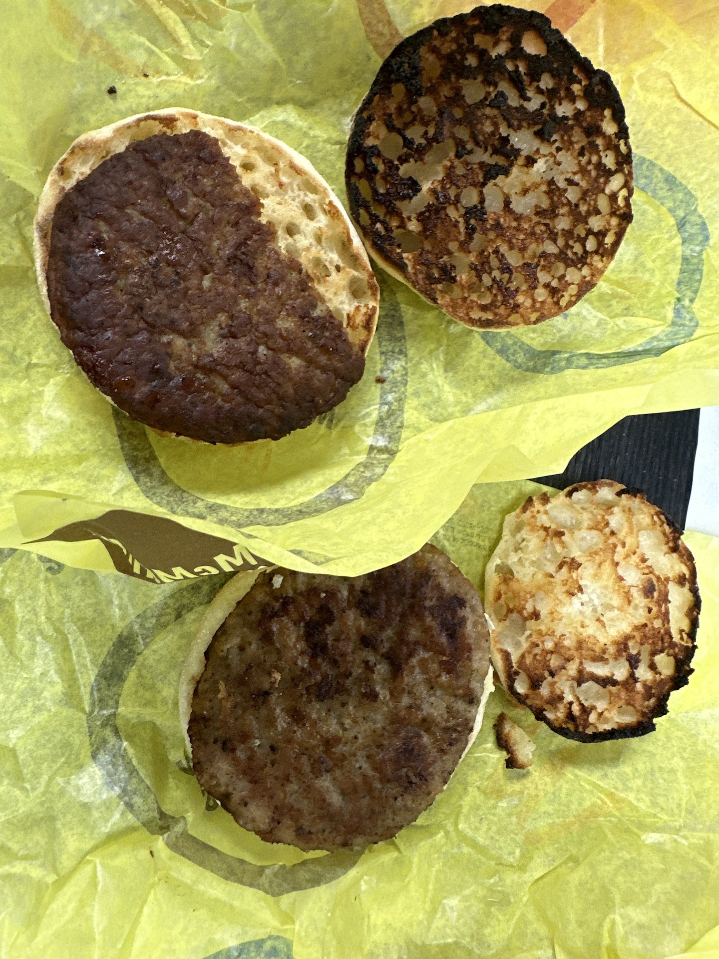 Food â âââââ (3/5) The sandwich was okay, but the English muffin was slightly burnt and the bacon wasnât as crispy as I like. It was edible, but not great. The iced caramel coffee, however, was tasty and made just right.
