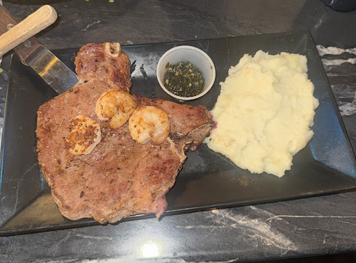 I got the Steak Onyx and the WV Sandwich with chicken. The steak was very flavorful and juicy, especially when paired with the chimichurri sauce. The same was true with the accompanying shrimp. I got the mashed potatoes as a side and they were way better than they had any right to be. The sandwich and the bread it came on was a hit with me as well. They have plenty more unique menu options and I'm definitely looking forward to another visit, especially with the prices. I got all my food, plus my girlfriend's food, for $56 without including tip. That's crazy in this economy.