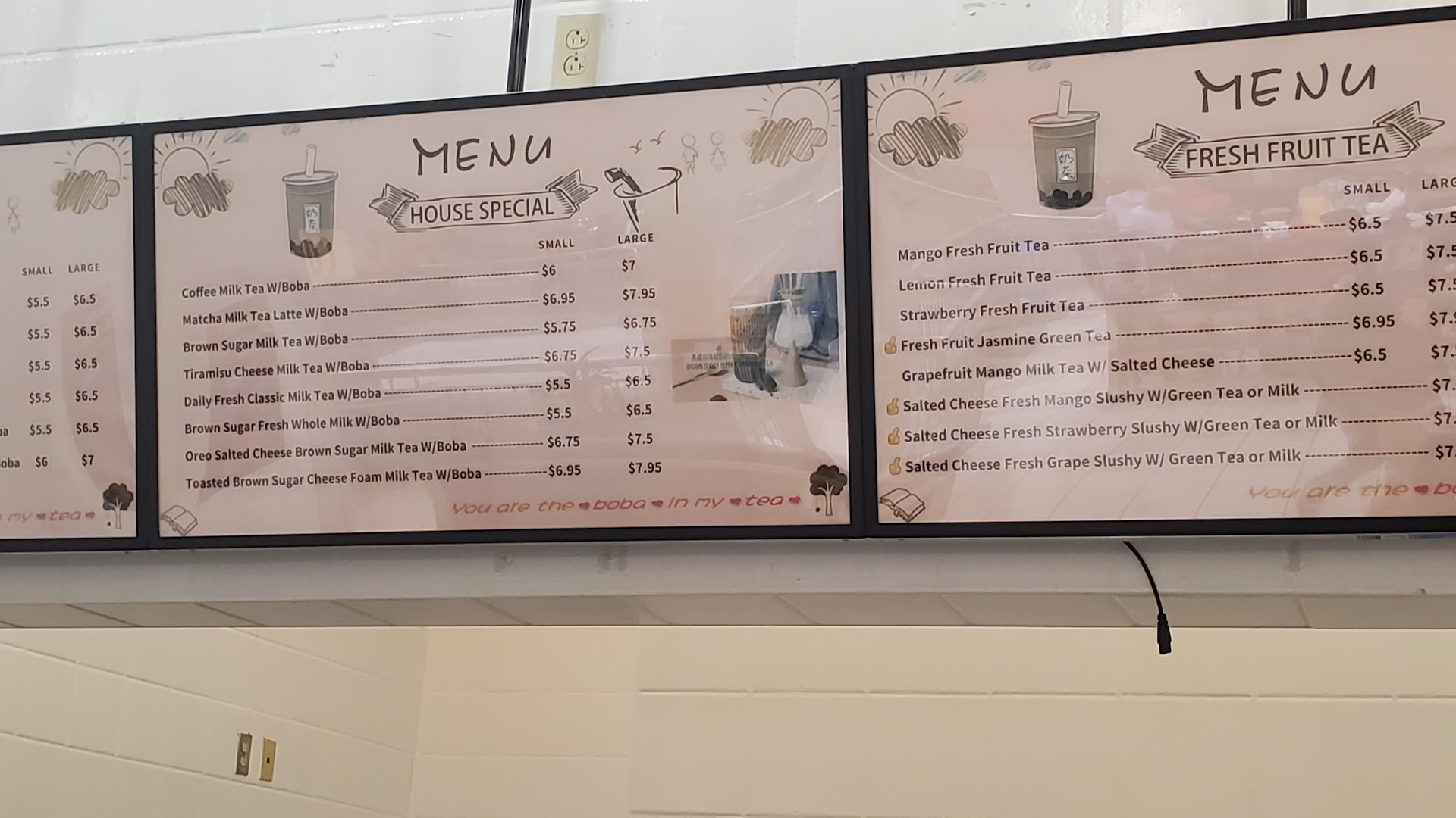 The place I usually go to stop selling boba.. So I give this place a try. I got strawberry boba first cause I know I like it... This was artificial strawberry milk & it tasted awful. The other shop had real milk and real strawberries you could tell this was milk & syrup and I'm not a fan of that. I did dump the drink out & ate the jellies at the bottom though.