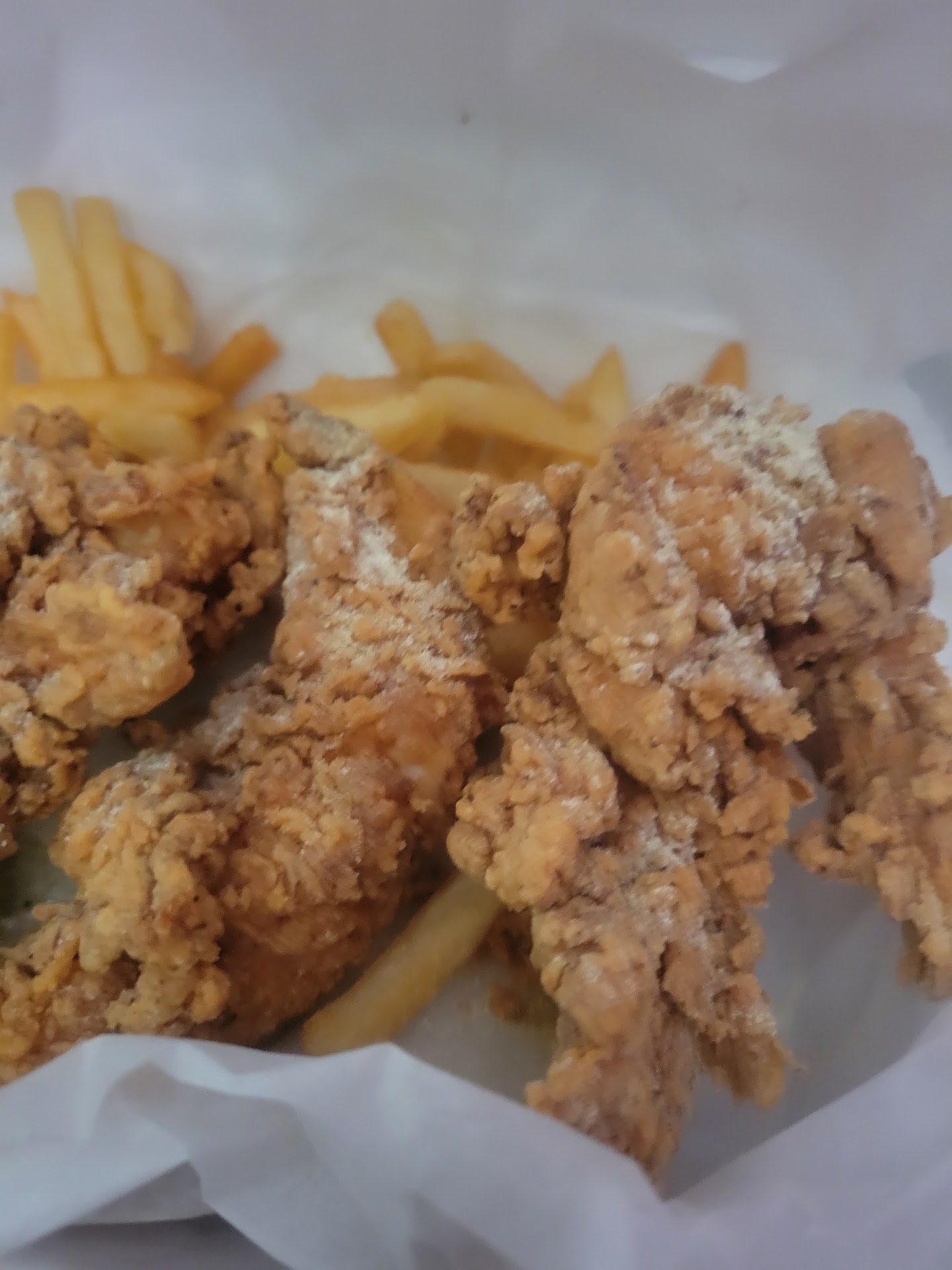Read moreI ordered 2 of the 3 chicken strip meals. He first shorted our change, an honest mistake that he fixed when pointed out. The owner told us 4 minutes. A few other people walked in and ordered. He told them where to get their drinks so we grabbed ours too. About 20 minutes after ordering we got our meals. Yhe fries had no seasoning at all, and we didn't see salt or pepper around. The chicken strips were large and made with real chicken. The breading was falling off though on most of it. There is no where to eat it there so we sat in the car to eat. Overall I probably wouldn't go back unless there was no...