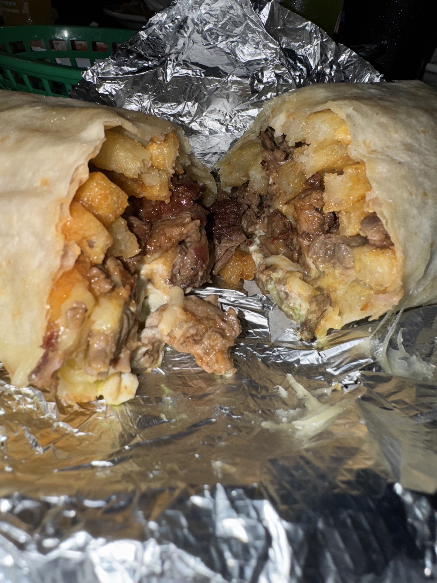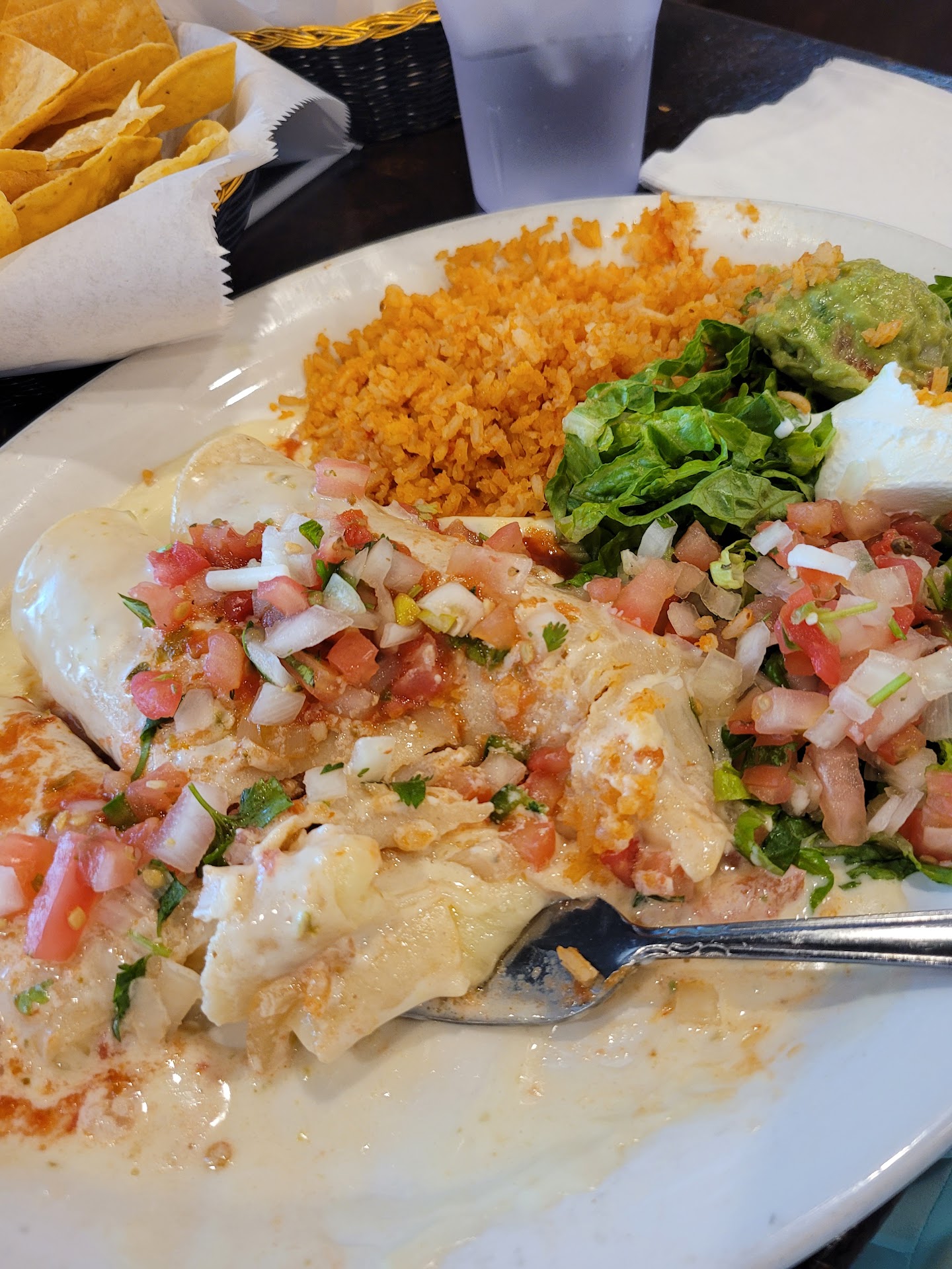 When we got home, the 2 chimichangas we ordered were mislabeled so we ended up eating each others meals. We also had asked for no beans and gauc, but both plates were swimming in them.
