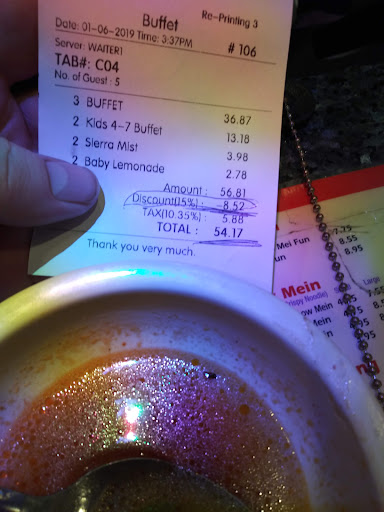 Read moreAsked ahead of time if they give a military discount and they said yes, they do. Our bill was almost $62, so I looked at my final bill, after military discount, which was much higher. They give a $1 discount, before taxes, on the bill for military discount. The food was almost all something breaded. I'd called and asked ahead of time if they had a large low-carb menu, with food that was not breaded or doused in bbq sauce. I was told, yes, yes, LOTS of choices! I had 3 choices. Green beans, salmon (which tasted overly fishy) and yakitori. That was all. My son tried the oysters which had a seaweed beard inside many of them. I advised him to steer clear of all, since they hadn't been cleaned properly. All in all, the staff was very friendly. They spoke in Chinese to my kids and I (who speak some Mandarin) and were very prompt to fill our drink glasses; clear away dirty dishes and present the cheque. Very clean restaurant, no dirty tables and we were seated immediately. I just wish the food were better and they didn't mislead about...