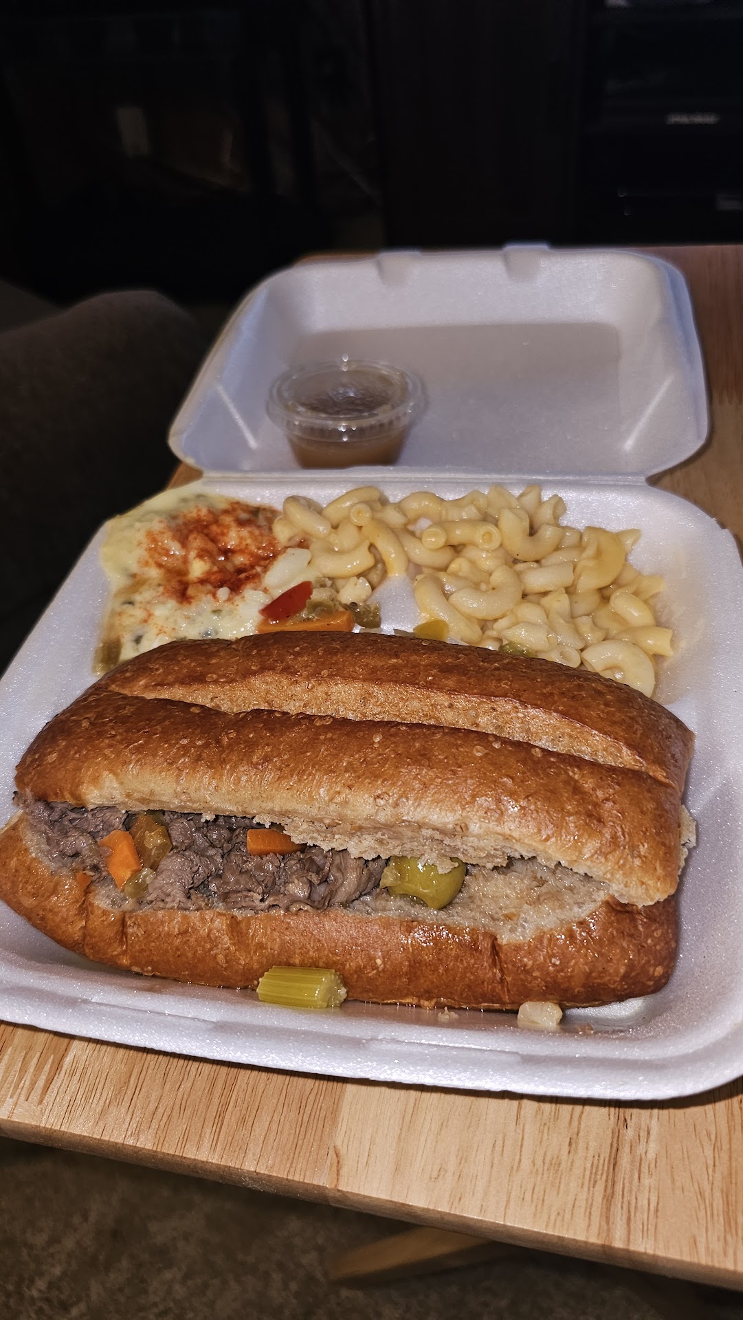 Wasn't really looking for a restaurant that specializes in home cooking/comfort food, but this one popped up online in Fairview Heights Illinois. Looked promising so I found it and decided to give it a chance. OMG!! Walking in the door, the 1st thing to hit me was a smell of deliciousness 😋, the owners met me and we introduced ourselves, got the story of who they are and what they want to do here. (Did I mention the awesome smell?), I am impressed by their vision and plans for this place. So many things to be offered to the customers on a rotating basis. I simply ordered an Italian beef sandwich and some fried rice. Mild Giardinara on the beef, mind you, they do NOT advertise this as a Chicago Italian beef, so the Giardinara was a pleasant surprise! Anyway, a short wait and my to go order was ready. The smell is fantastic!! When I opened it at home, still hot and fresh! I barely remember what happened to the sandwich, it was gone!! And the Fried Rice is amazing! Not greasy, light and full of flavor, no soy sauce needed! I'll be broke before I know it eating here! The prices are not high at all and it's...