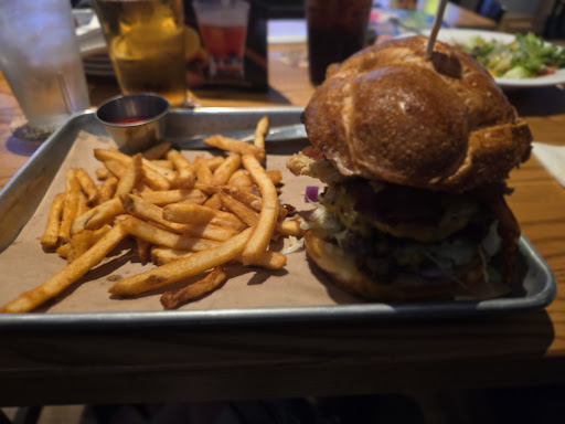 Read moreI was hoping the food would be great here based on the atmosphere and menu. It was not. My steak was overcooked and rubbery. My husband was never asked how he wanted his burger cooked and it came out more than well done. It also was the wrong burger. He ordered a classic cheeseburger and got a bacon cheeseburger with some sort of artificial tasting cheese sauce on it. My kids ordered the mac n cheese and hated it. I tasted it and they were right. It tasted like it was loaded with artificial ingredients and overly processed. Not only that but half of the dish was served stone cold. On top of that, my "steamed veggies" arrived after I finished my meal. It was clear they had been cooked in a microwave. No seasonings at all. They were rubbery and gross. Their queso that came with their Bavarian pretzel was not fresh and loaded with far too much sodium. Nothing tasted house made. In fact, everything looked and tasted like a microwave TV dinner. It was disgusting! And it costed 70 dollar plus a 20% tip! We all left feeling sick to our stomachs from the grease and artificial ingredients used, as well as ingredients that wete far from fresh. We will NEVER go back and NEVER recommend this place to anyone. I honestly do not know how places like this stay in business or even can live with themselves by serving food like this. Unethical, unprofessional and lacking in an resemblance to edible food is what you will get at Boomer Jack's. You're better off going...