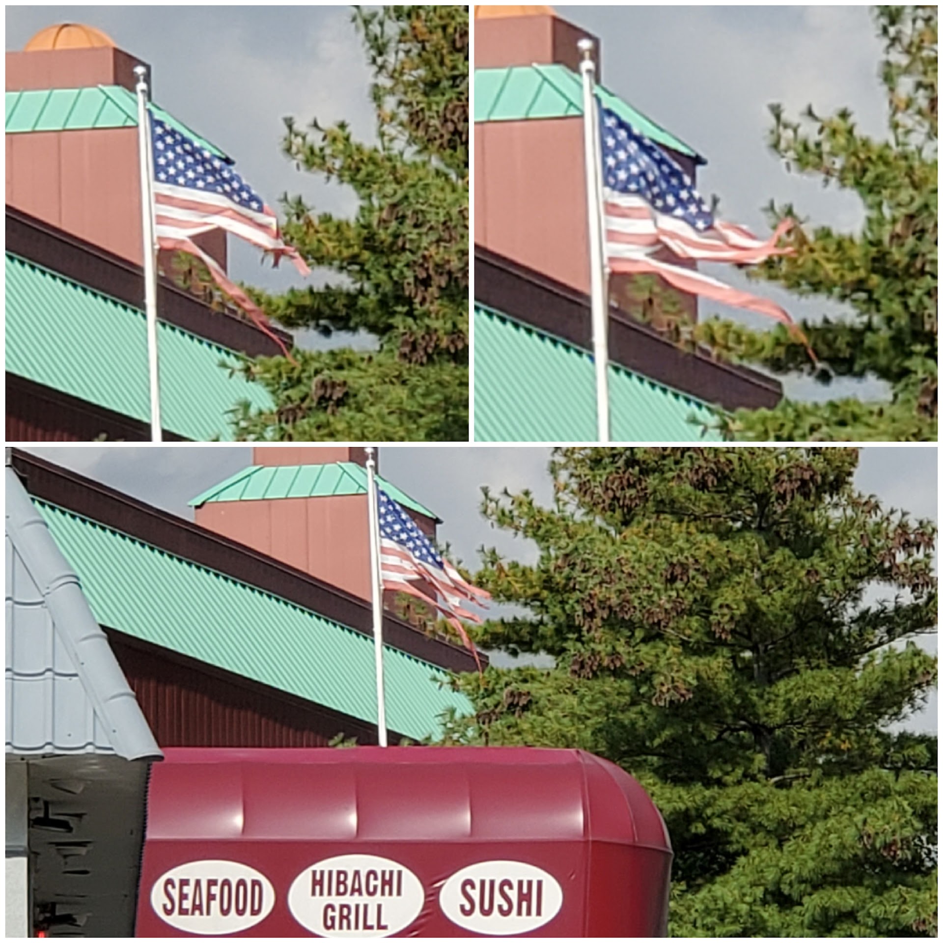 Lastly, after my meal I was snapping pics of the building and I noticed our countries flag on top of the building all torn and...