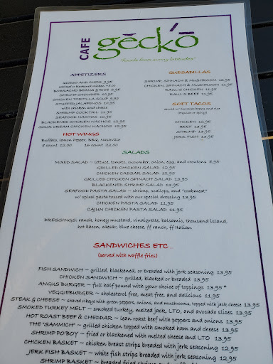 Read moreI recently moved into the apartments at Fairview Town Center. I've been trying to get out and visit the shops and restaurants. It's so nice to be able to walk everywhere This was the first time I had ever been to Cafe Gecko. I really chose this place because it has a huge outdoor dining area that's dog friendly. I always have so much to do/errands to run on the weekends and I feel so guilty leaving our dog home alone. It's great to find a place where I can take him with me. My server was Gabrielle and the first thing she asked me was if she could get my dog a bowl of water. I ordered a beer and after she walked away another woman (the Manager?) also approached my table and asked me about getting my dog water. So, they were very attentive and welcoming to me and my dog. I was torn between getting a burger or the tacos. On the suggestion of my server I ordered the Steak soft tacos. I opted for the spicy ones. My food arrived promptly and hot. I loved the tacos, the steak was tender and had good flavor. It was spicy but not overwhelming so, just right. I think they would be better topped off with a little avocado or cheese. But, they were good. I liked the borracho beans and the pico de gallo. I wasn't a fan of the rice but, I'm just not a fan of that kind of rice anyway. I usually ask for extra beans if some other kind of rice is not available but I forgot. The weather was perfect for sitting on the patio, the prices were reasonable, the service and the food was good. I will...