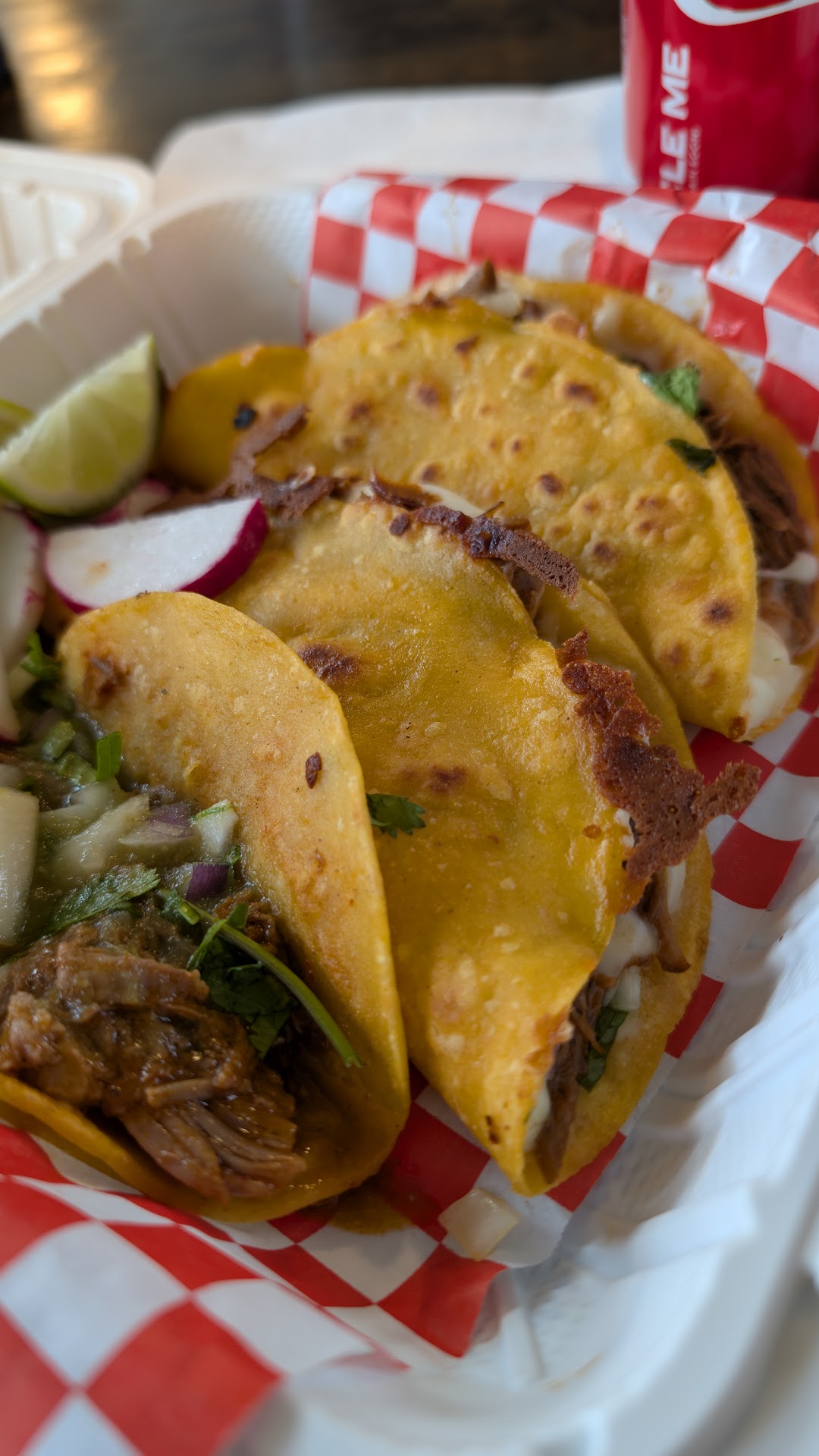 Read moreThis was my first experience with this amazing place. I told them I'd never had this style had this style of tacos, and they gave me a free loaded up taco for free to give it a try and all they wanted, was for me to like it. I did lol And they won a regular for sure! The consome is amazing, and they give you a really generous portion of it! The tacos are fresh, and absolutely everything you'd hope to find in a street taco! Everything we got, was good. And the price is very reasonable for how much you're getting! Seriously, if you're in the area and are on the prowl for a good, hearty meal, look no farther! Grab a couple tacos and a sangria, and you won't regret it! I'm a local and will for sure be...