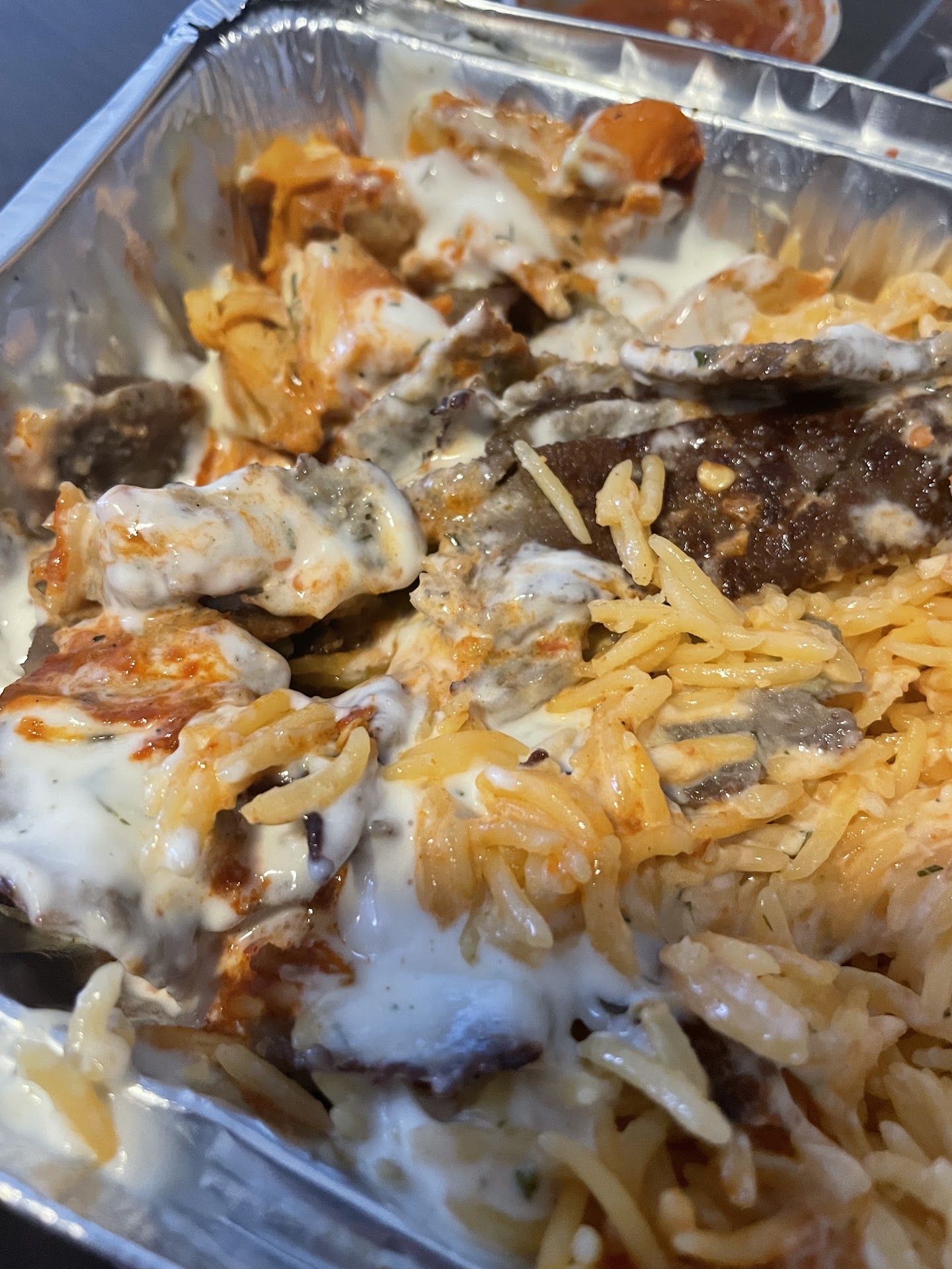 Food: THEIR FOOD IS HALAL! The menu is quite varied. The burgers are large and quite delicious. The fries are always crispy and easy toe at. The highlights for me are the fried chicken and the gyro. The chicken skin is crisp perfection and the meat is never dry. The gyro though OMG the gyro. The sauce is flavorful, it adds a lot to the dish. A decent amount of lettuce+tomato and they LOAD it with meat. Won't be disappointed.