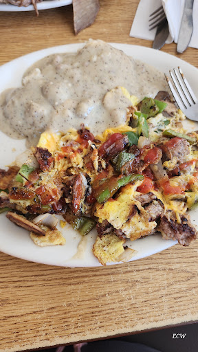I overheard a lady at the table across from us ask the same waitress if the chicken fried steak was any good. She replied, "i haven't tried it, but I heard it was really good".....sound familiar? Her dinner came out looking just like mine with the same thick, glopy gravy atop her chicken fried steak and potatoes. We didn't stick around long enough to see if she finished her dinner, but I saw her eating some of her husband's breakfast meal. Maybe next time I'll try breakfast instead... We come through this little town a few times a year. I'll give it another try. Maybe i just made a bad choice. But I'll skip...