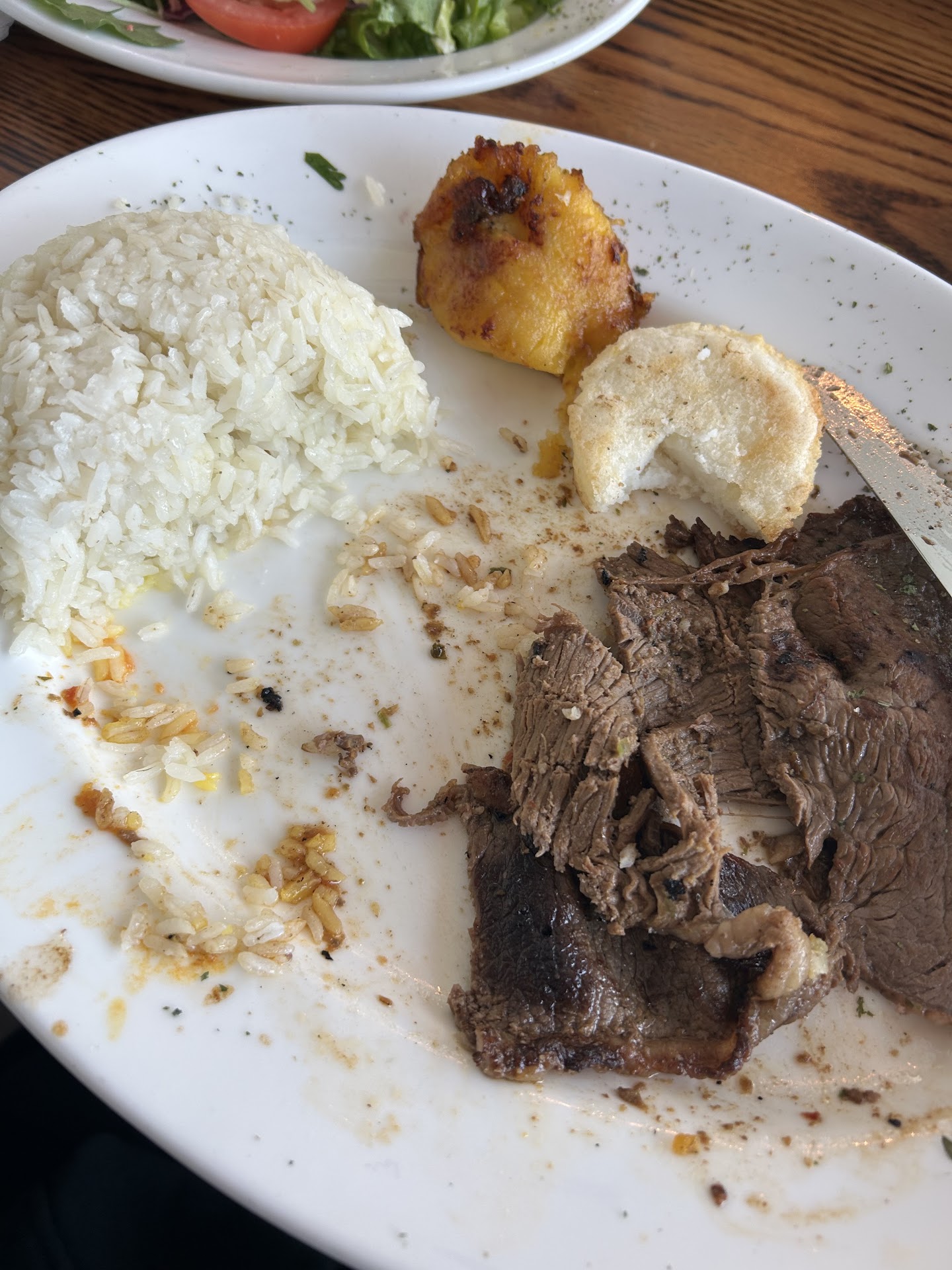 Read moreI always go in person here and the food is decent, this time I ordered online. It got delivered quickly but I cant even begin to explain my disappointment. I ordered a Skirt steak special which says that it includes TWO side orders. When I received my food,the plastic they use to cover the food was not closed well enough and all of the sauce and some meat was spilling inside. Aside from that,I got sweet fried plantains and a house salad. They gave me all three items mixed. The 3 pieces of meat,salad and plantains. Why would anybody mix a salad with dressing and plantains AND meat? Also, the “house” salad had a weird dressing that tasted like watery tomato sauce,it only had carrots and beets added to it and nothing else,despite the description saying it has more things. What type of salad is that… AND they only added THE TIP of the fried plaintain, they literally gave me ONE piece of plantain mixed in with the horrible salad and the meat. The meat was the only thing I ate. Please, if you are not going to deliver good looking and good tasting food then don’t deliver it at all. It seemed like whoever made and packaged my food was dying to go home. The food isn’t free and there is no reason why such a good restaurant should be delivering food like that. I will not be...