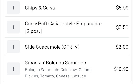 Ordered the bologna sandwich, it had unlimited, up to 6 toppings.. received a greasy, soggy and flavorless hunk of bologna sandwich bread pudding. I submitted a ticket for help and eventually someone came to drop off the rest of my wifeās order and we asked him. He removed the sandwich and left, returning 15 minutes later telling me to give the kitchen a second chance; he let me know I ruined the sandwich myself for requesting all six toppings.