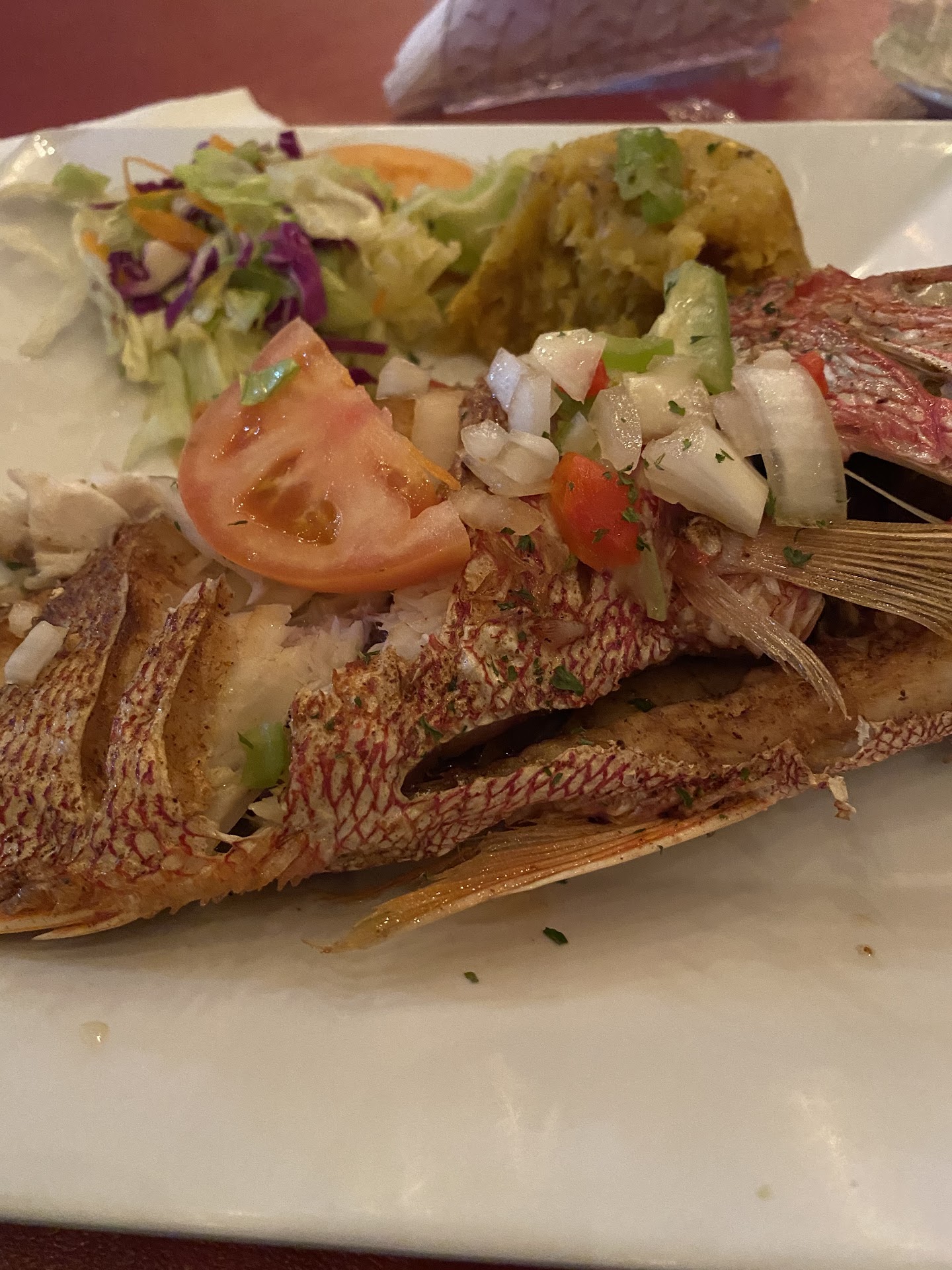 I’d recommend sharing as the portions are huge. Also, this was our mistake, but the price next to the snapper said $22 which we were very impressed with. However, it is $22 per lb, so...