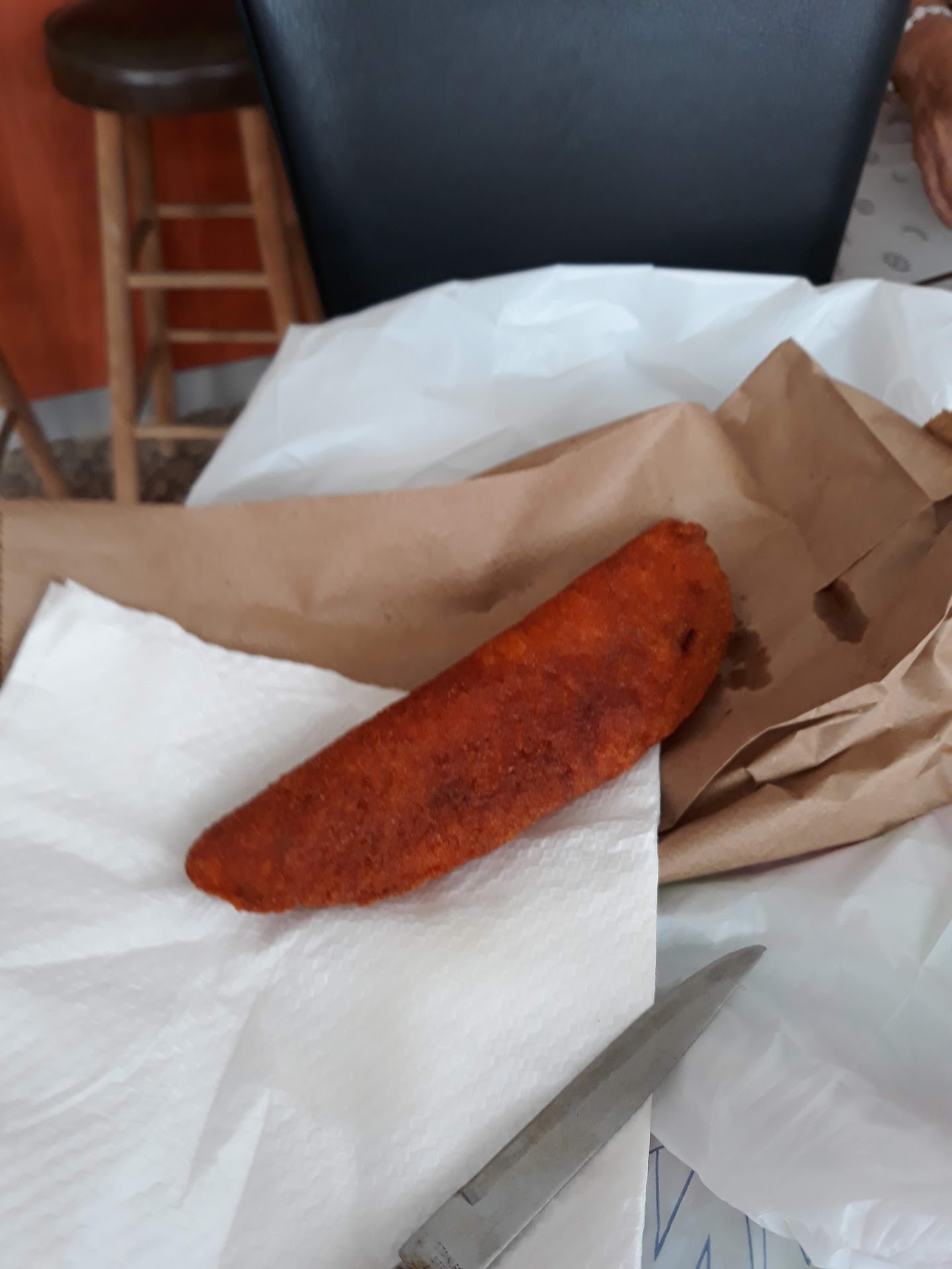 Read moreWas expecting alcapurrias made of green plantain not yuca (casava) The Real alcapurrias are of plantain. Yes the 12' ones are huge. Too fat and too soggy. Then I ordered the small ones to be made at the moment and when I get them out of the bags were what we call in Spanish GOMOSA in english gummy. Which meant it was not done at the moment. It were the ones that were at the window. Prices were excellent $5 12' and the small one $2 of meat and...