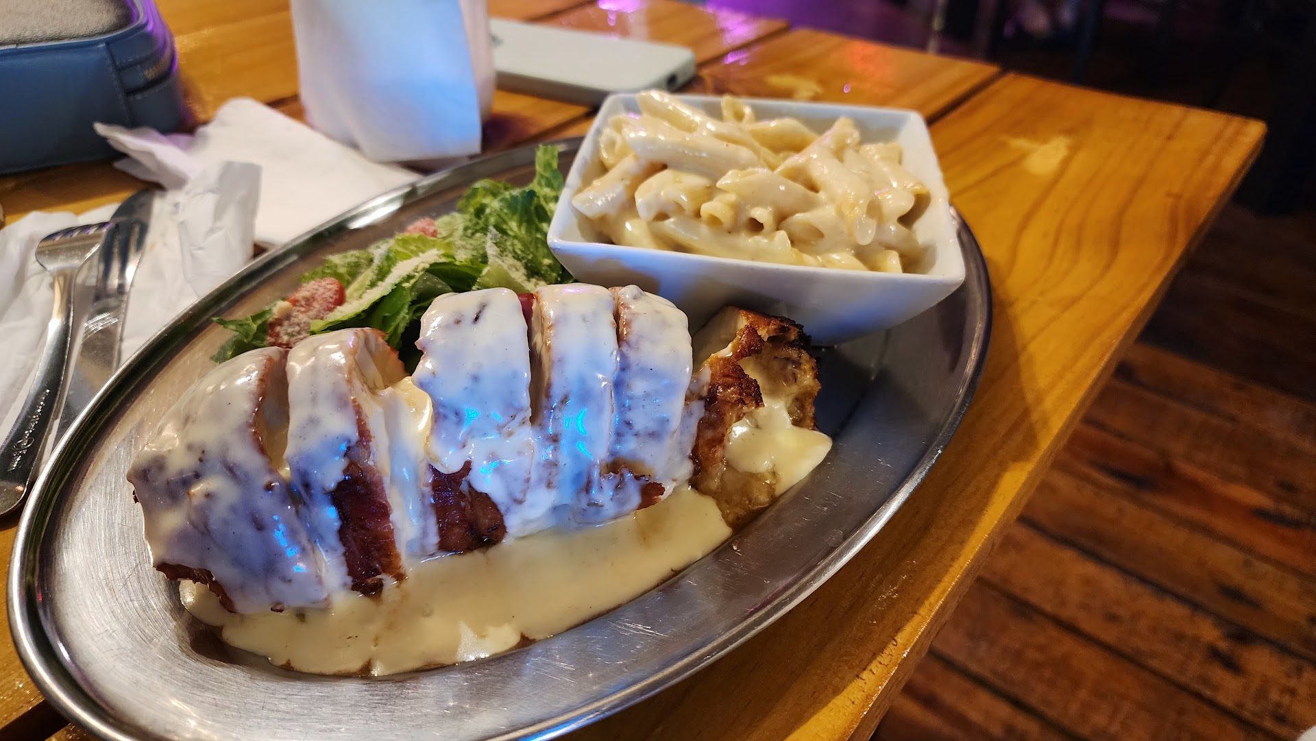 Our drinks came out essentially one by one over a 45 minute period. We tried to get an update from our server who had not even put in the order. He said another large group was also being taken care of and slowing down the kitchen. At this point we were getting nervous about if any food was coming out because our order wasn't even in. I also knew the group he was talking about had already been served their food before we even got there. Maybe they were still doing dessert but regardless, they should not have slowed the kitchen down that much. Another group was sat outside with us after we had already arrived and their food order was taken after ours and actually started coming out.
