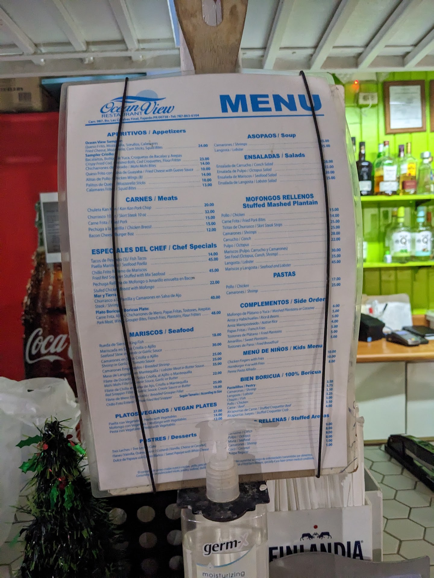 Read moreMy husband and I both ordered the same fish dish, grouper with Creole sauce. Mine was quite good, my husband's was inedible. It was extremely dried out and as tough as shoe leather and he literally could not eat more than a couple of bites. There were no veggies on the menu, just fried stuff, but our waiter suggested some veggies that were not on the menu and brought us some steamed broccoli and carrots which were fine. However our waiter did not look our way once during the entire time we were there. He only interacted with us when he took our order and when he delivered our food. We had asked for water, and when I was desperately thirsty and could not stop coughing, I could not get his attention to bring water until 15 minutes later when he finally brought it with our food. We also had to get up and start to walk out of the restaurant before we could get him to bring us our bill. By the way, you can get the same fish dish half a block of the street at the walk up place that sells a lot of pastilless and stuff, for substantially less money and it tastes better there. Ocean view does get a bit of kudos for the fact that my fish was good, and that they offered some fresh veggies, would seem to be hard to get on the island. Fried plantains and root veggies are not a good match for a diabetic, and that seems to be the only sides on offer at almost...