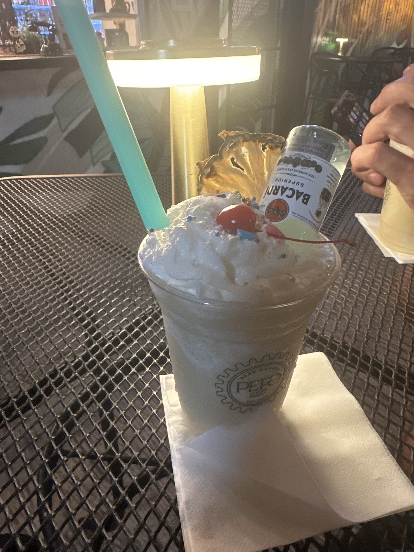 Read moreSo glad we drove by on our way to the Bio Bay tour - we came back after and were so glad - it was so close! The pizza was delicious - we got the Hawaiian with fresh pineapple and perfectly wood-fired crust brushed with garlic. The Pina Colada was perfect. Such a cute area - brightly painted tropical murals on the buildings and lots of fun games you can play. There was a cute outdoor painting class going on while we were there. Wish we lived here - we would come back...