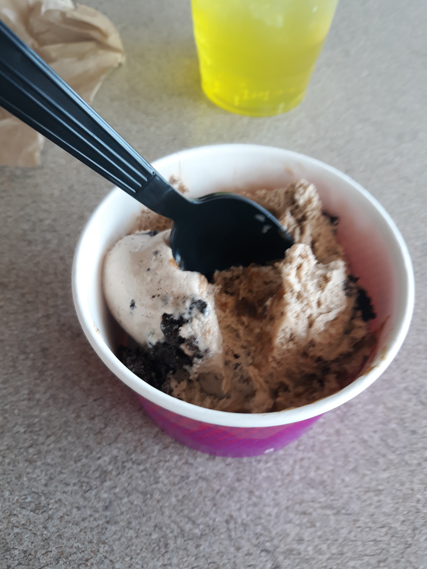 As far as Greek fast food goes, it is pretty standard. The gyro is nothing to brag about. The dining area is clean, but a slightly sticky tabletop meant they are not cleaned properly. The service was friendly and willing to answer questions. They had desserts and other items available, but not listed on the menu board. I like to start with some pitas and hummus, but it is not on the menu. They do sell flatbread and hummus as a takeout but I had to ask about it. The star here is the gelato. I tried the caramel cookie, and it was at the perfect texture and very good flavour.
