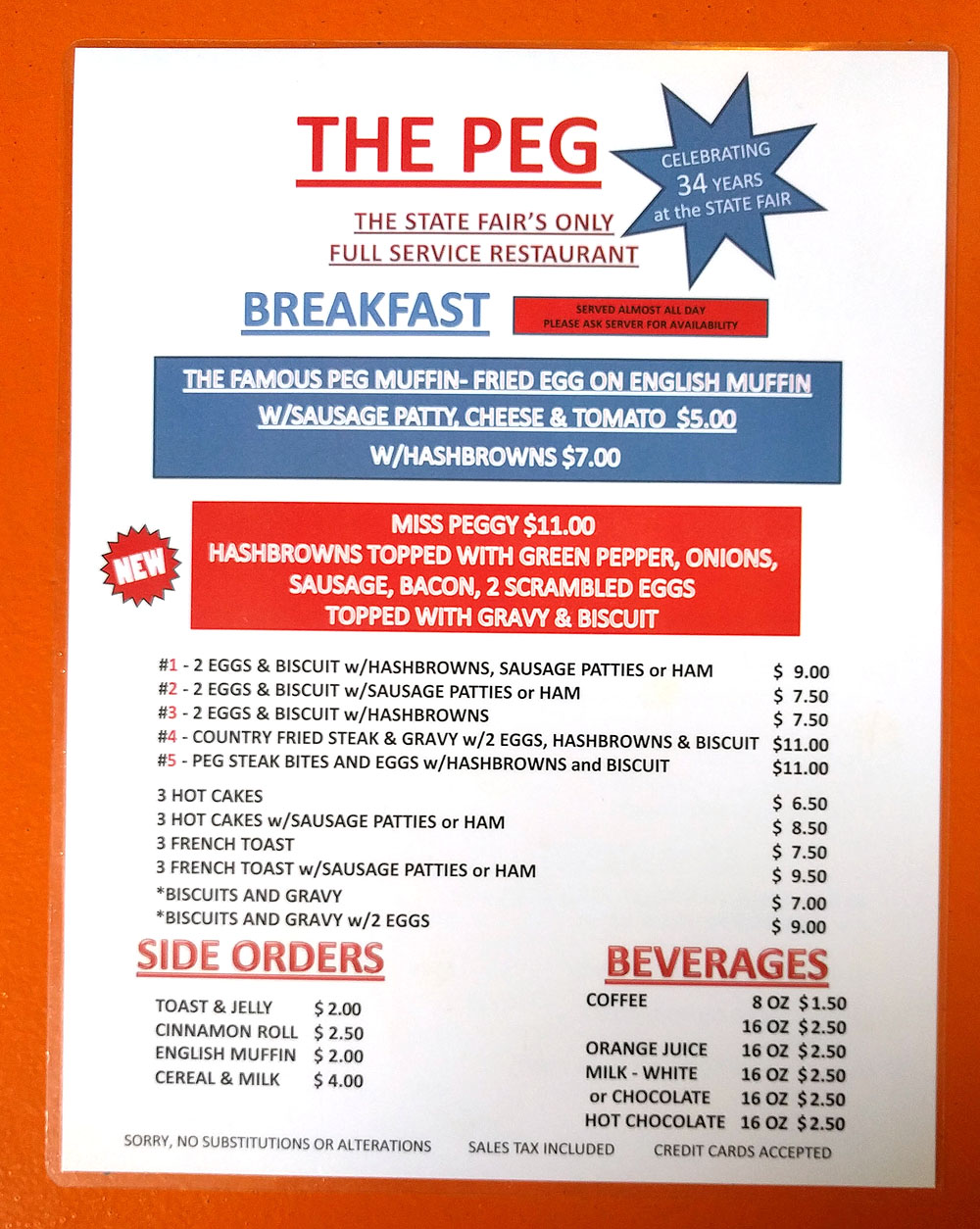 I don't get the appeal. They hype the place up for being the only full-service restaurant on the grounds. Yeah, I get it, it's not a common experience at the sacred fairgrounds. But it's a fair. People eat like cows, they graze and chow down all day. It's elbow to elbow, and there's trash all over the place by evening. Having a waitress bring you food is unique, but good grief, it's not like I'm being treated like royalty. The food was OK, but it's the fair. Everything is overpriced, so I'm paying a lot for the privilege of somebody bringing my food to me rather than walking it myself to a table. And for that overpriced food I'm now expected to tip? What a real pleasure that burger and fries turned out to be. Oooooooooooooooh, I was waited on! What an incredible experience. It's a hot day, could you turn up the AC? Oh, no, you can't. I overpaid for minimal table service and now I have to tip? At least they aren't serving me deep fried food on a stick. I don't know who thinks this place is great. But the hype about it is not warranted. It's better than a lot of the garbage served out of a mobile trailer, but not worth your time and money at the fair. Honestly, is any of the food worth it? The correct answer is no. And The Peg is at the top...