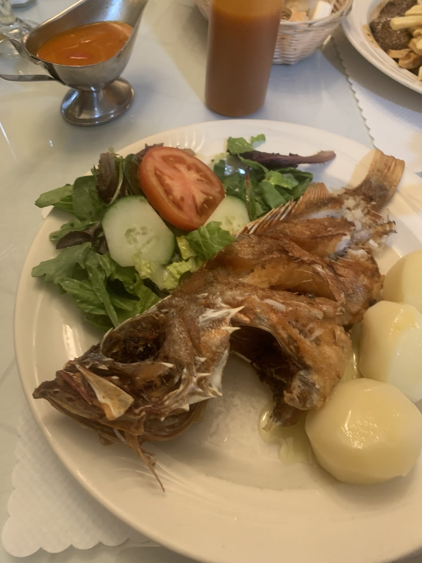 -The food was terrible. Everything was overcooked and extremely bland, with no love or pride. The side salads that were forced upon my wife and her mother as sides were wilted and slimy. My chicken & shrimp were both overcooked and dry. My wife’s smelts were bland & over-fried. My mother-in-law’s whole Bass was overcooked and dry. My father-in-law’s Codfish dish had no flavor whatsoever. Awful food all around, they should be ashamed to serve it to people!