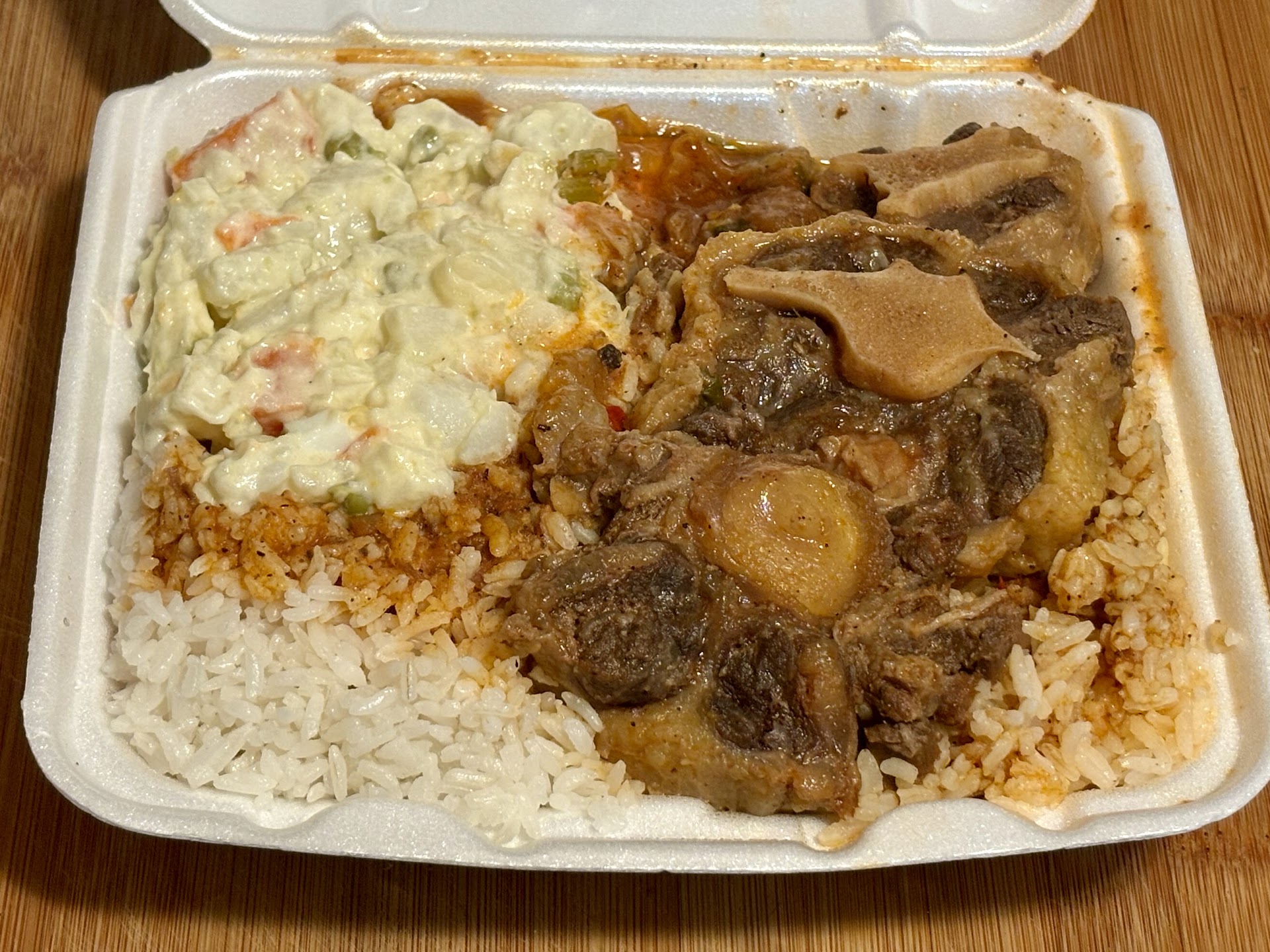 The white rice and beans were good. The rice was cooked well and the beans were flavorful- I appreciated the sauce not being watery. The oxtails were tender but very under seasoned- the flavor of the gravy carried the dish.