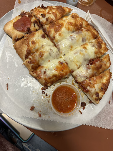 Old school pizza joint with traditional menu, and traditional food. Owner is a cool guy. A little crotchety, but you can tell he's got a good heart. Nice guy. Just been there too long I'm sure.