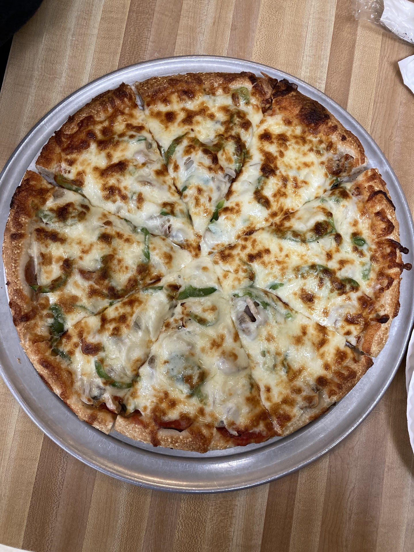 I Called on a Friday night Alex answered phone I ordered a lg cheese pizza well done can't be more clear WELL DONE then I ordered 2 lg steak n cheese with fresh ground hot pepper toasted bread so I got there early there were people sitting down eating watching tv talking everybody enjoying themselves some families some couple some alone good atmosphere so I get too counter and pizza is coming out,he cut it up boxed it I thanked him Alex was very very polite trying to accommodate every customer in a very good way a great smile he's good at what he does so I got home first thing wife did was open pizza box takeout slice of hot steaming cheese pizza she looks at it and says perfectly done I'm happy because happy wife happy life I open my steak sandwich Perfect now I'm very happy I want to thank Alex and everyone at highland pizza for great food great service...