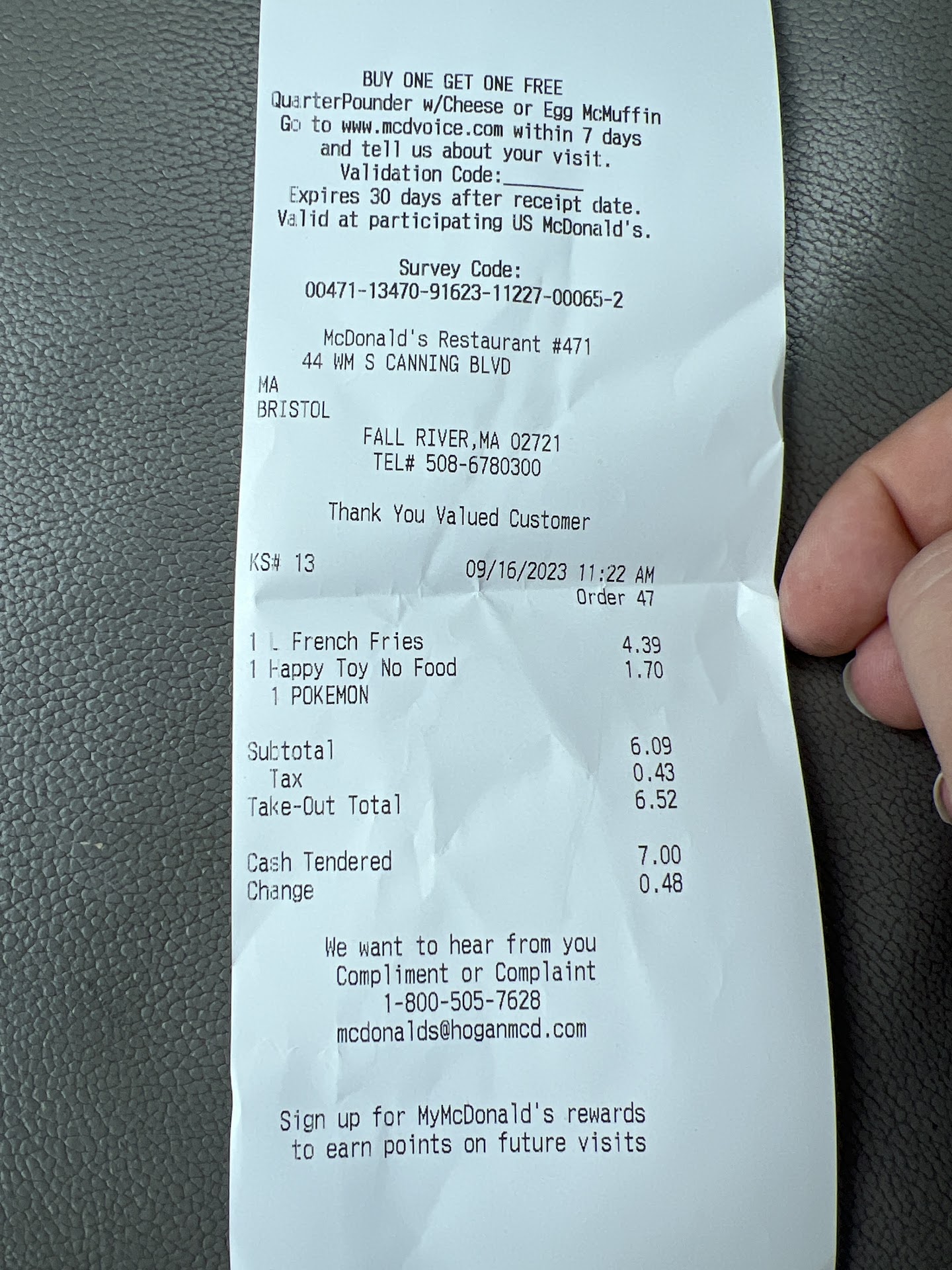 By the time he finally did approach the counter, I was fuming. I wasn’t expecting a lot from this Fall River McD location, but this guy got to me on a period day. Why was he acting like this at work? I let him know how lazy I thought he was and left without paying for my kiosk order at all. I then walked down to the Dunkin’ on Globe St. where I enjoyed a bagel and latte and my order total was $4 less than I was about to spend at...