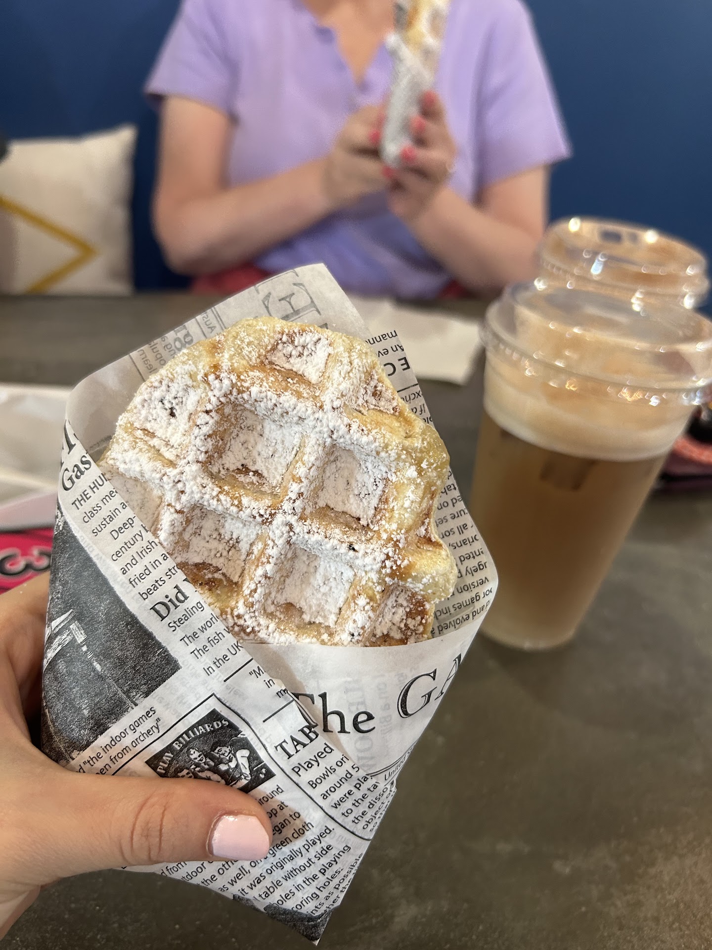 The house-made cold-brewed teas show impressive attention to detail, with fruit infusions achieving sweetness through actual fruit rather than syrups. Belgian-style Liège waffles arrive with proper pearl sugar crystals that caramelize appealingly, though the limited food menu suggests this remains primarily a beverage operation.