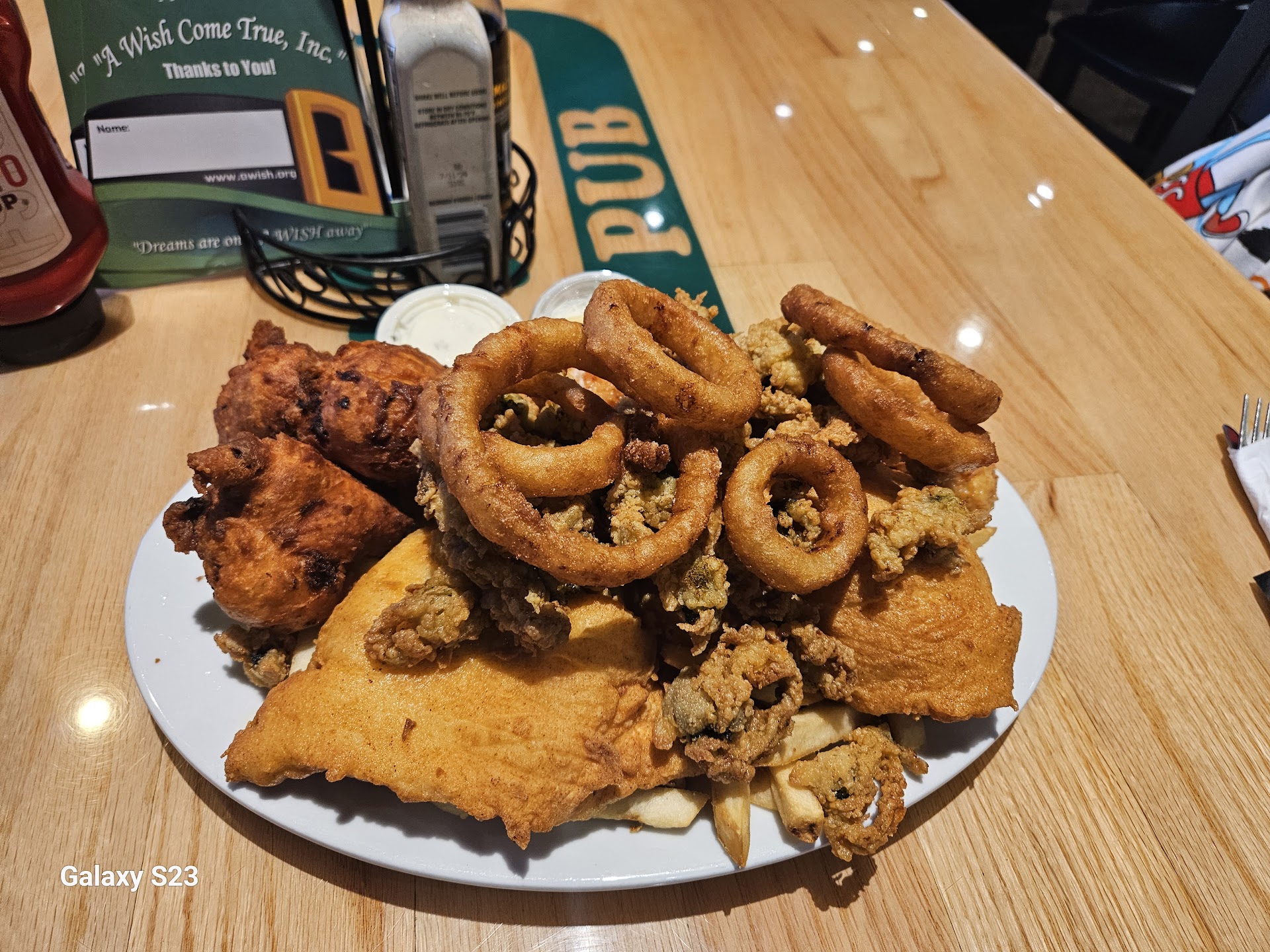 ย ย ย Read moreFirst I'd like to start off on how I was scouring throughout Grub Hub trying to figure out what I felt like eating, mind you, it was like 7pm on Sunday night 01/07/24 and I figured out that I could go for a good ole burger w/ fries. I came across Scottie's Pub & the menu had so much good things that sounded so good! Then I came across the stuffed cod w/ seafood stuffing and decided to run with that. With an added loaded baked potato. Not realizing that Scottie's is in Fall River and I live in New Bedford and.... Forgetting that it was snowing at the same time, lol my delivery ran over an hour later than the set schedule. Well let me just say this.... It was very, very well worth the very late delivery & I thank the delivery driver so much for making this delivery happen considering the hike & snow fall!!! My 1st ever meal from Scottie's and I am now a huge fan & customer of this Pub. I will be ordering that dish again very soon and this time I'll be adding a vegetable & garlic bread to it;...