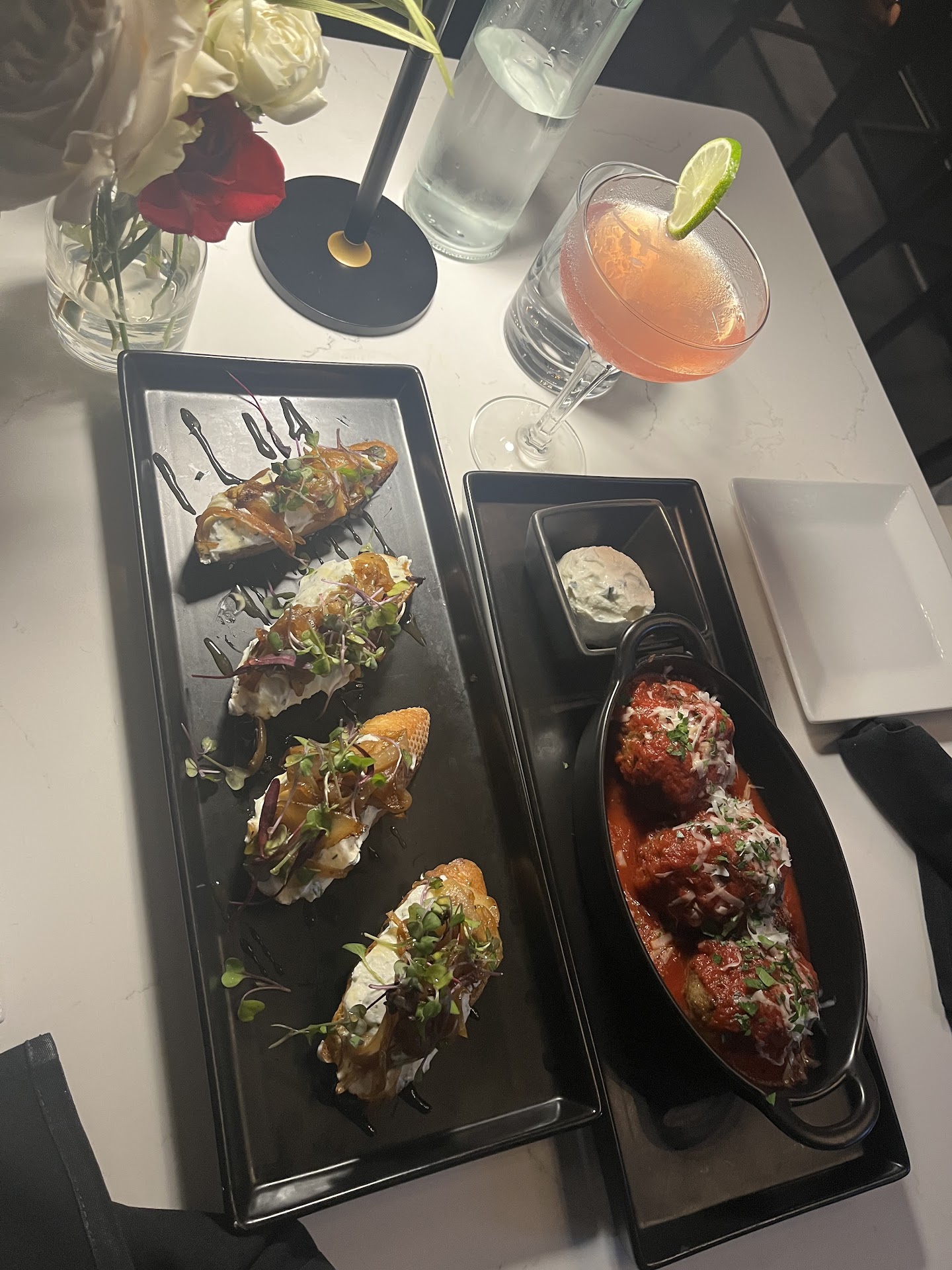 I was told by an employee to give an honest review good or bad. They are a new place and need to know what they can do better. Let's rewind It's Valentine's Night. Our reservations were made well over 40 days prior I was super excited to be going to this beautiful new establishment. I had seen posts and pics of the decor and the unique sharable dishes, especially the sliced prime with cream sauce.I had set the bar high and was expecting the management and service to be top notch. I love to try new places. I love food. I love to support small businesses. This is a true honest review I have read some with similar feedback from other dates and some way to made up pretty. The hostess was awesome. He welcomed me. Told me I was dressed with Valentine's glam. Friendly and polite. He then went in with They are behind and there would be a long wait for tables, but the bar had seating immediately. No worries we like to sit at the bar. Now begins where to seat us at the bar. He tells me to follow him we start walking to the bar toward end stools. The manager tells him no as she tells another couple to move to the other end of bar as she is now putting up reserve signs at the 4 corner stools. Never gave him or us direction just walking around in circles. I can already see everyone is unorganized and all looked confused. He apologized several times and finally he sat us at the middle of the bar. The rearranging of stools begins. One too many. We now are sitting on top of one another. No purse hooks that I could feel but could barely move so sat on it. The bartender trying to make the it better saying its tight but you guys made it work. She then starts complaining to staff she has too many orders. Making wrong drinks and literally making one after another. The manager has her going left and right but wasn't really helping her. After several minutes the bartender welcomed us and took our drink order. Fast forward all the food coming out was blah. Messy plating. Everything was thrown down.from the board. The ravioli and lobster dry overcooked. My prime was well done( asked for med rare) it had a hit of sauce. Roasted potatoes and asparagus forgotten. Looking over at others food looked dried also. I wanted to return my steak but didn't feel like waiting. Had waited long enough. The corner 4 stools were saved for friends who were waited on first before others that been waiting Champagne was shared between them and manger. That is a No No. Owners should never drink at the bar especially on a busy night with an entire unorganized staff. A few other mishaps happen with other guests but that's not my story to share. Was anyone checking plates as they came out. No quality control. I made the best of my night. After all its Valentine's Day and with my love. He enjoyed his Espresso Martin and I liked my mocktail. The dessert was just store bought chocolate mouse cake. We paid our 200.00 bill and left disappointed. The Hype was definitely not experienced. Will return at some point. Hopefully more...