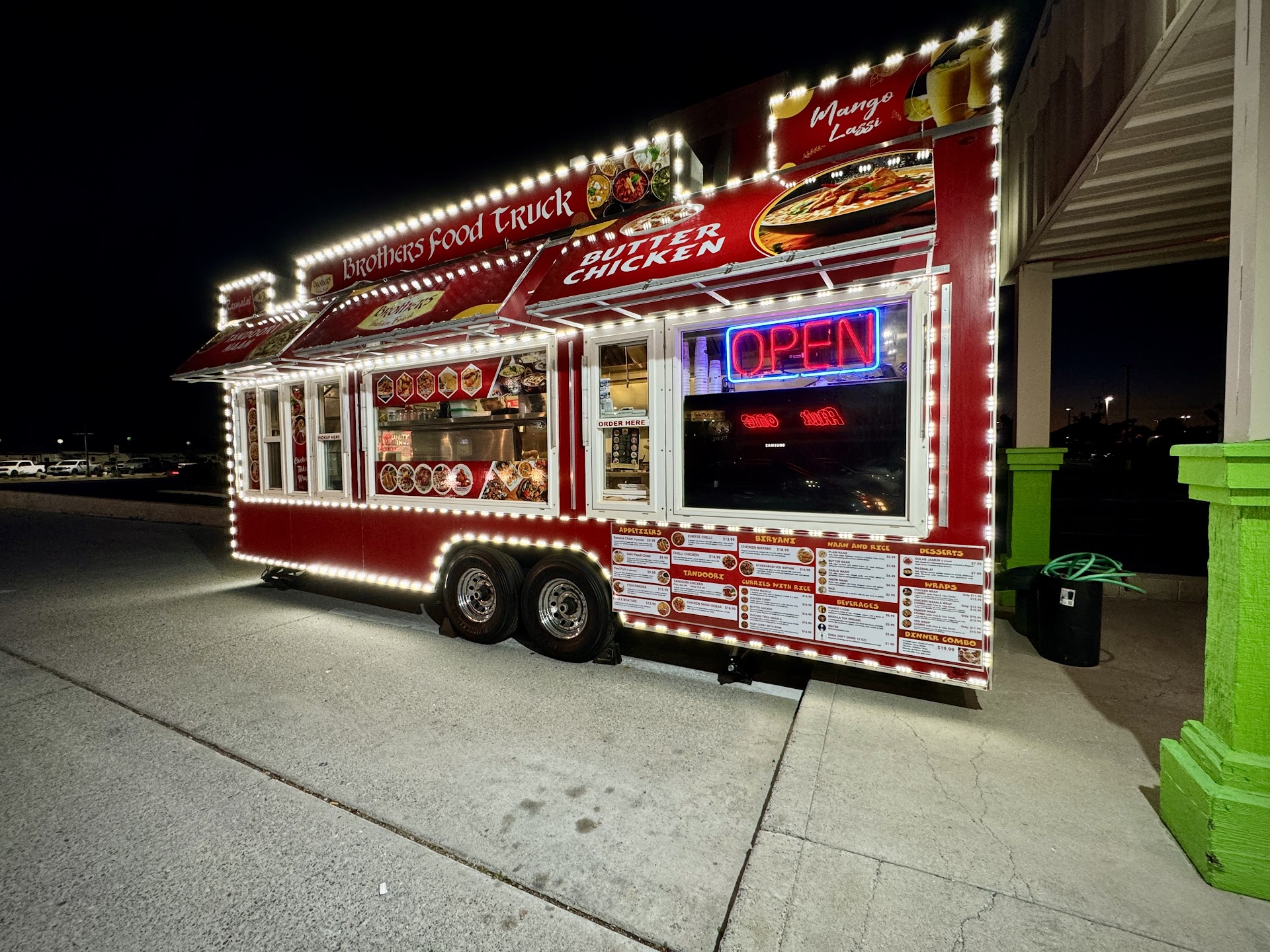 Ā Ā Ā Read moreThe brothers food truck was great. We got chicken tikka Marsala and curry chicken for dinner. They gave us enough rice and the main order to fill a dinner plate. I would have liked to have a couple more chunks of meat in our order, but the food was delicious so I overlooked that part. They gave us naan bread as a side to our order as well. The amount of food in the 2 orders with bread were enough to satisfy 2 people for the evening. While we waited they gave us a complementary cup of laasi, which is a yogurt based Indian drink. I had never had it but it was damn tasty. It was mango yogurt and cardamom. I donāt like mango but this was so different I liked it. The food was amazing. Very tasty not bland like some of the other food trucks weāve been to. The service was great. Friendly people willing to talk and laugh. My original order was incorrect, and instead of letting me walk away they got my attention and corrected it. It took slightly longer to get our food than most people would wait at a drive through, but I watched them make everything through the windows of the trailer, nothing was made ahead of time and warmed up. Itās good to see a food business provide variety in Fallon, and not just add to the pizza and Mexican restaurants we already have. I would recommend going here, I will definitely be going back āāSomeone else put in their review about being in a sketchy parking lot, but the trailer is in the parking lot of the owners store on the main strip in town, itās well lit from lights on the trailer and from the store. I feel this is a good placement by him, he doesnāt need the permit to park it on his own property and while you wait you can go inside and buy drinks for the family whether it be juices sodas or adult drinks. -thereās nothing sketchy...