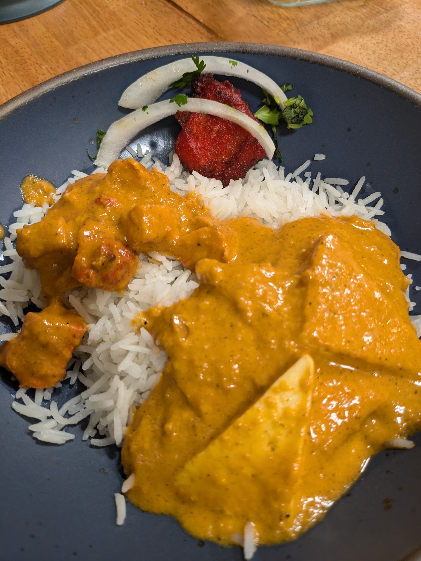 The portions of everything were laughable, served in tiny cups that looked more suited for a side of dipping sauce than a meal. The naan, that was supposed to be the savior of the meal, the trusty sidekick that swoops in to scoop up curry and deliver it straight to flavor town, was instead burnt, yet somehow managed to be weirdly chewy, like someone had toasted a piece of old rubber. It had no flavor, no soul, no reason to exist.