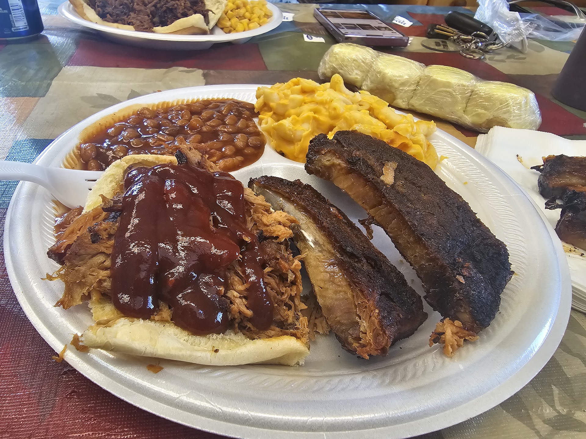 “Which BBQ sandwich is better the pulled pork or the brisket?” I ask the pitmaster and proprietor of this desert outpost. “I have awards for everything I have on the menu, so that’s really up to you.” He replies and that reply only makes my decision a bit harder. “I can make you one with half and half,” he says as he instantly makes the decision easy and earns himself a tip. Well, this man’s talk wasn’t simply braggadocio, he had solid BBQ, sides AND sauces. We call that the triple threat in BBQ land where so many soar in one category only to fail in another. I can vouch for the pulled pork / brisket half & half. I had regular sauce on the brisket and spicy on the pulled pork. The coleslaw and mac & cheese were solid choices and that slaw will mix well on the sandwich if you’re one who ventures to do such. I was offered a punch card, but I’m only in Fallon every few years so it would be a moot point. I’ll tell you this, next time I’m here I will drop by to grab some ribs. Probably try that...