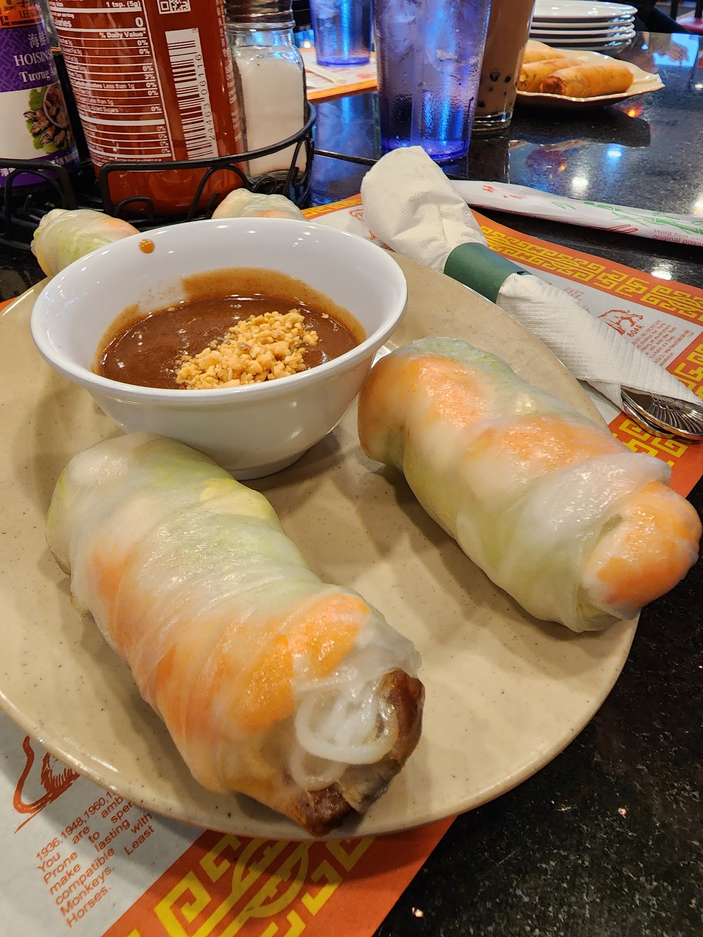 The only other issue is a supply issue. My wife loves their tofu spring rolls, but they are apparently unable to get tofu for some time now. I hope they get it resolved someday.