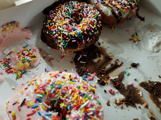 Because it's new and made to order you may be waiting. I went 7:15 Saturday morning and waited 15 minutes for my order. They can get bogged down quick if there are big orders. Someone in front of me ordered 4 dozen and nothing came out for 5 minutes. By the time I left there were 25 people inside. I DO NOT recommend going early afternoon during week. I've driven by twice and there were 40+ kids hanging out after school.