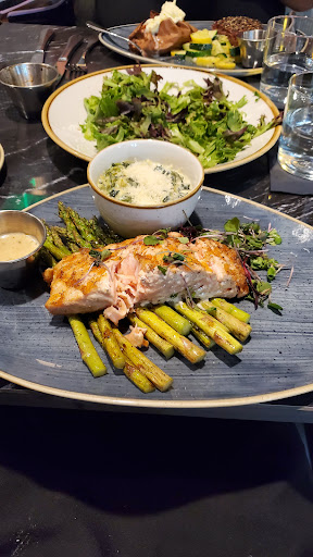 Read moreI loved this restaurant and I'm glad it's a new addition to the area. The staff was very attentive and nice & the vibe was cool it's one of those places where you get great food and service but you feel you can dress in a T shirt or a suit, anything really flies. The portions we got for the price were great, I mean we were very full and happy with the quality of the food. The salmon was delicious , perfectly cooked, and huge, & I thought the sauce on the mussels was fantastic & there were lots of muscles. Super nice owners and the manager came and talked to us for a bit after. Our server was a young, super nice guy who did a good job but I could sort of tell it was his first restaurant job, but we learned he's only been there for a week and I mean he still did a LOT better than some service I've gotten in other upscale restaurants. Speed of food out the kitchen was also good.